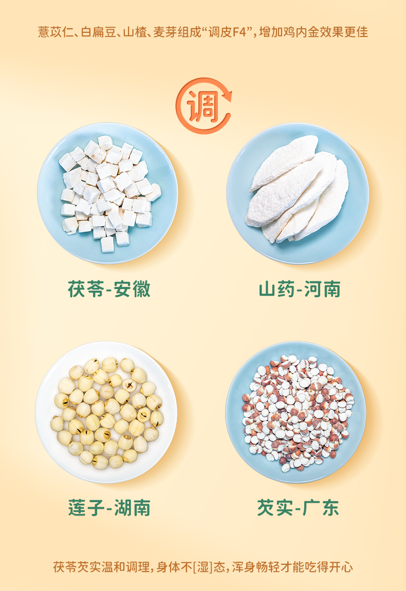 精选山楂、麦芽、砂仁、山药、白扁豆、肉桂、鸡内金、陈皮、莲子、芡实等13味食材,经过数十小时制作而成,注重“消、调、养”。