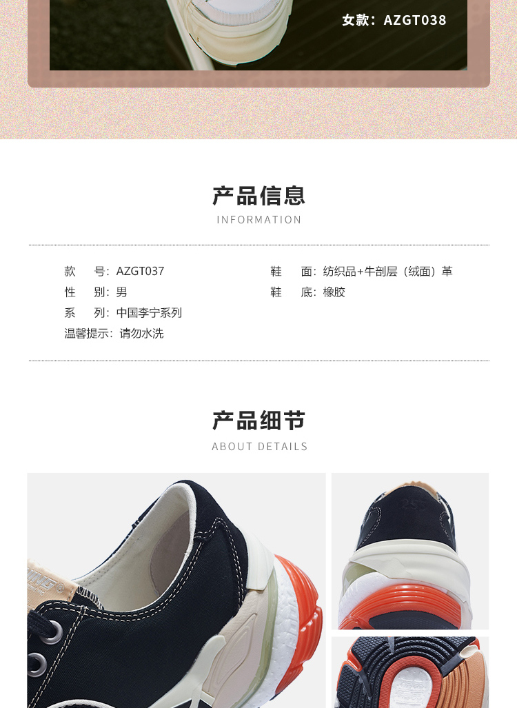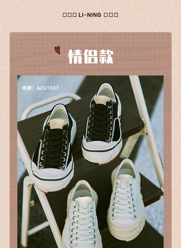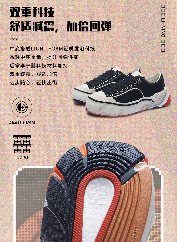 中国李宁 无忌新家族IP男子运动休闲鞋时尚潮流休闲帆布鞋AZGT037