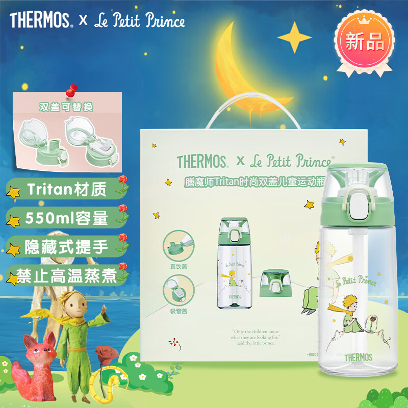 膳魔师 Tritan 时尚双盖运动水杯 550ml 一杯双盖