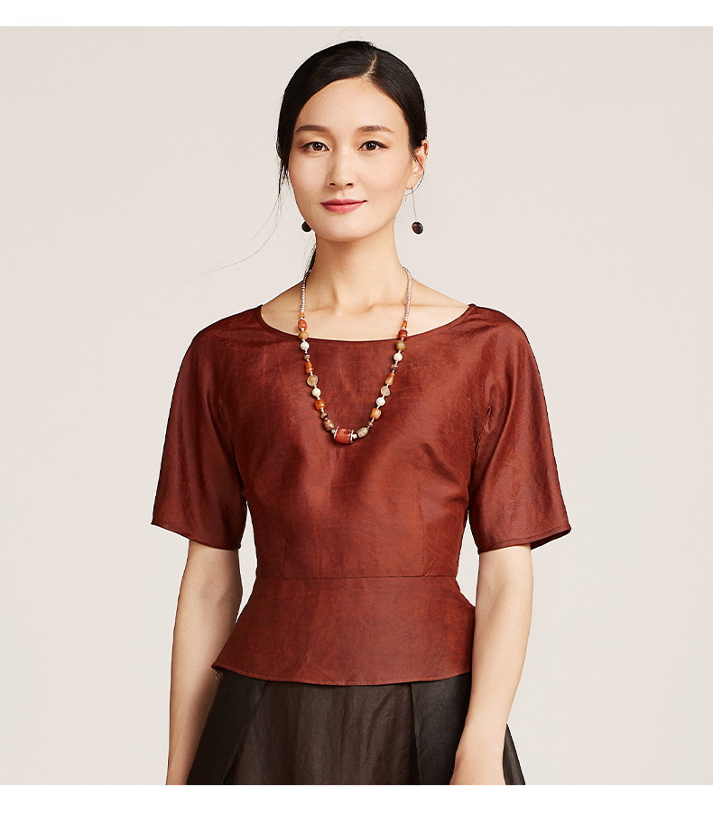 TANGY Collection/天意精品幻侠系列原创简约中式莨绸收腰T恤