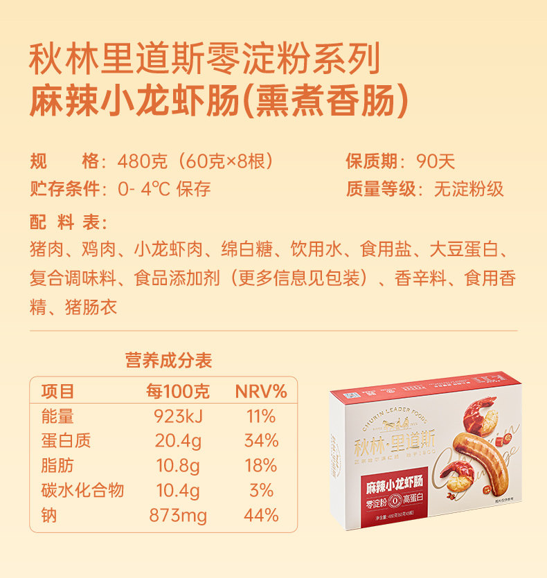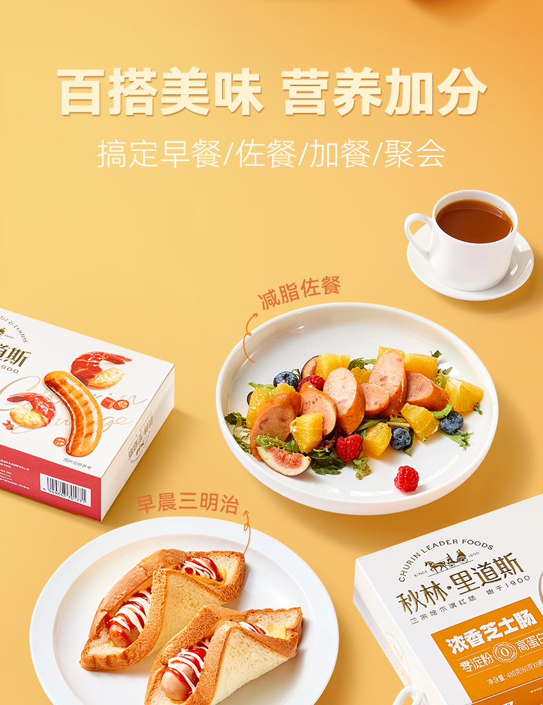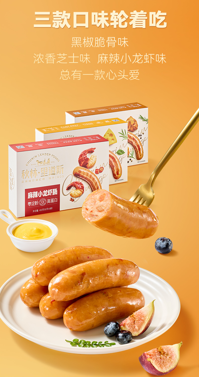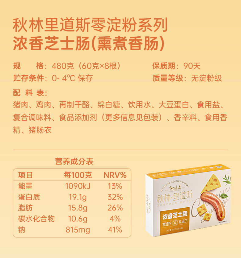 秋林里道斯旗舰店浓香芝士肠烤香肠即食480g/盒早餐肠