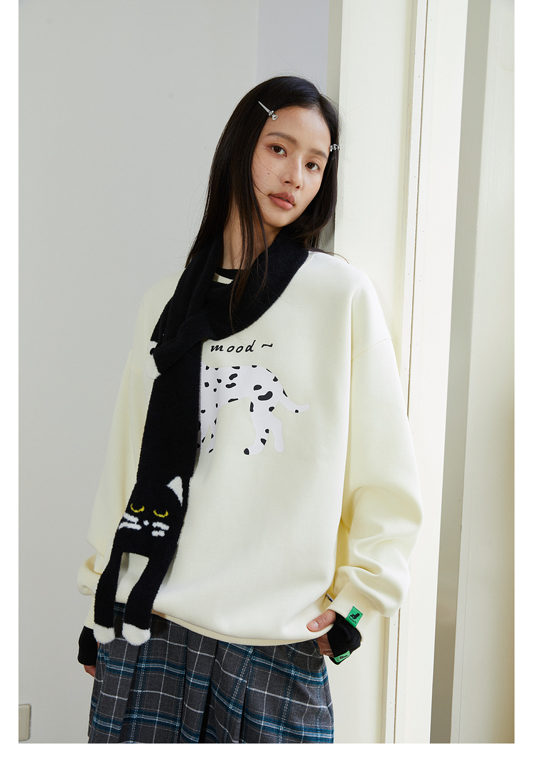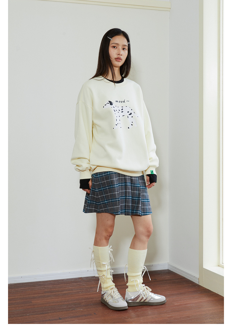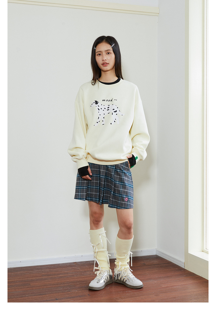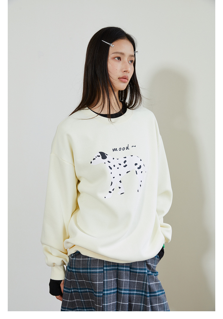 Mood Like Me/MWY2411/斑点狗涂鸦插画圆领毛圈卫衣