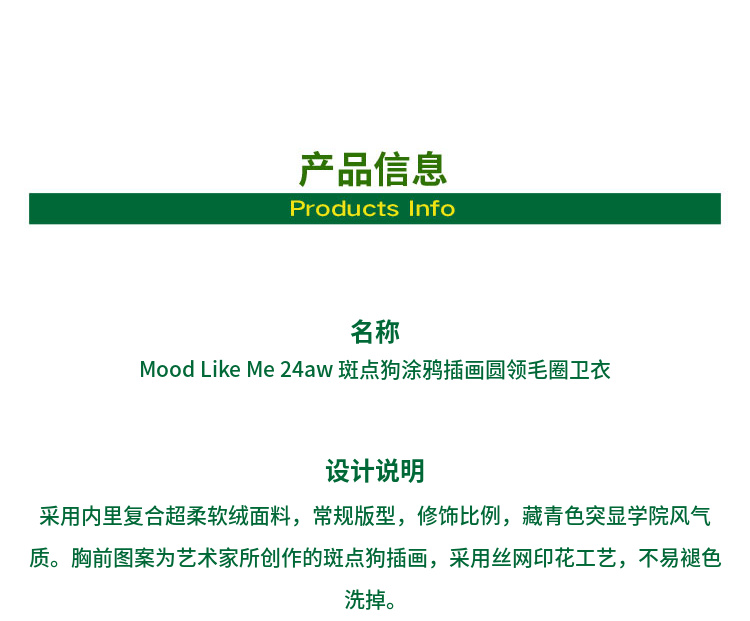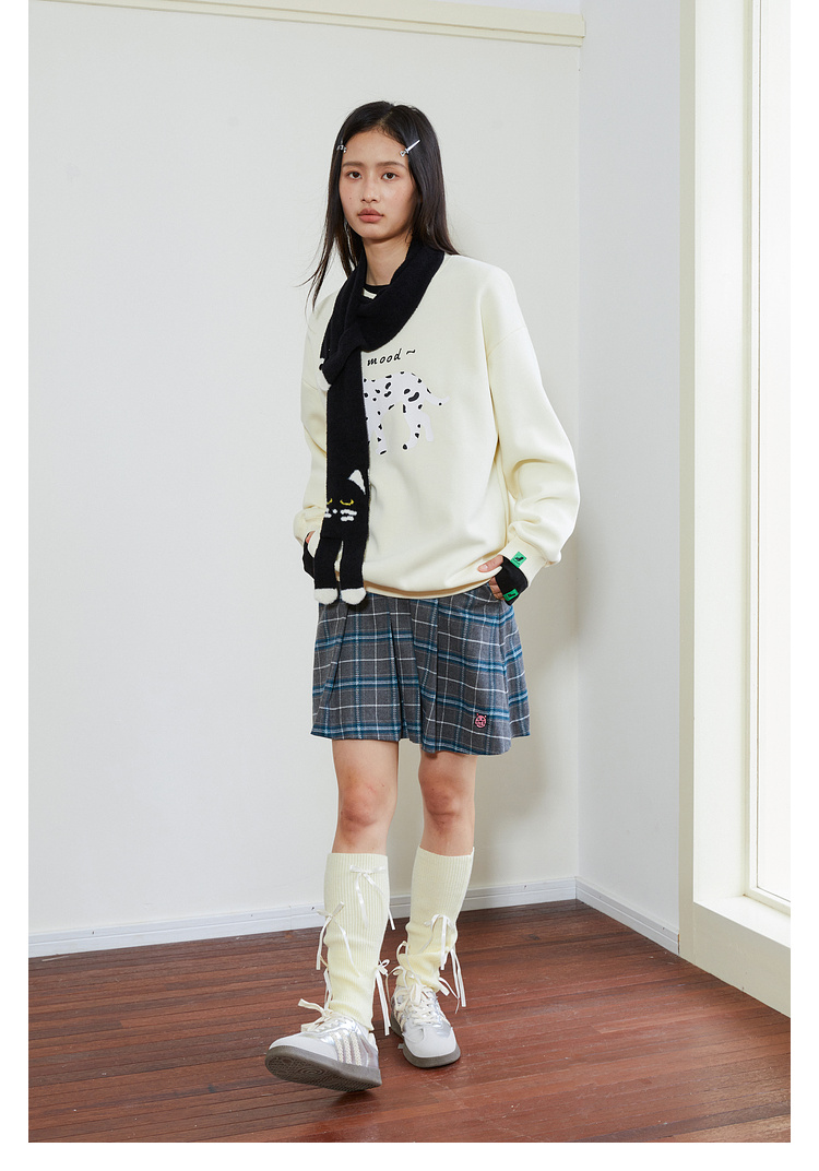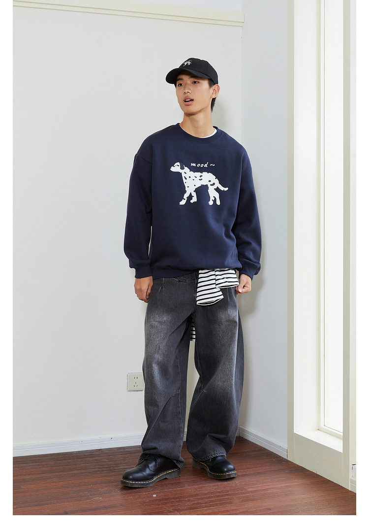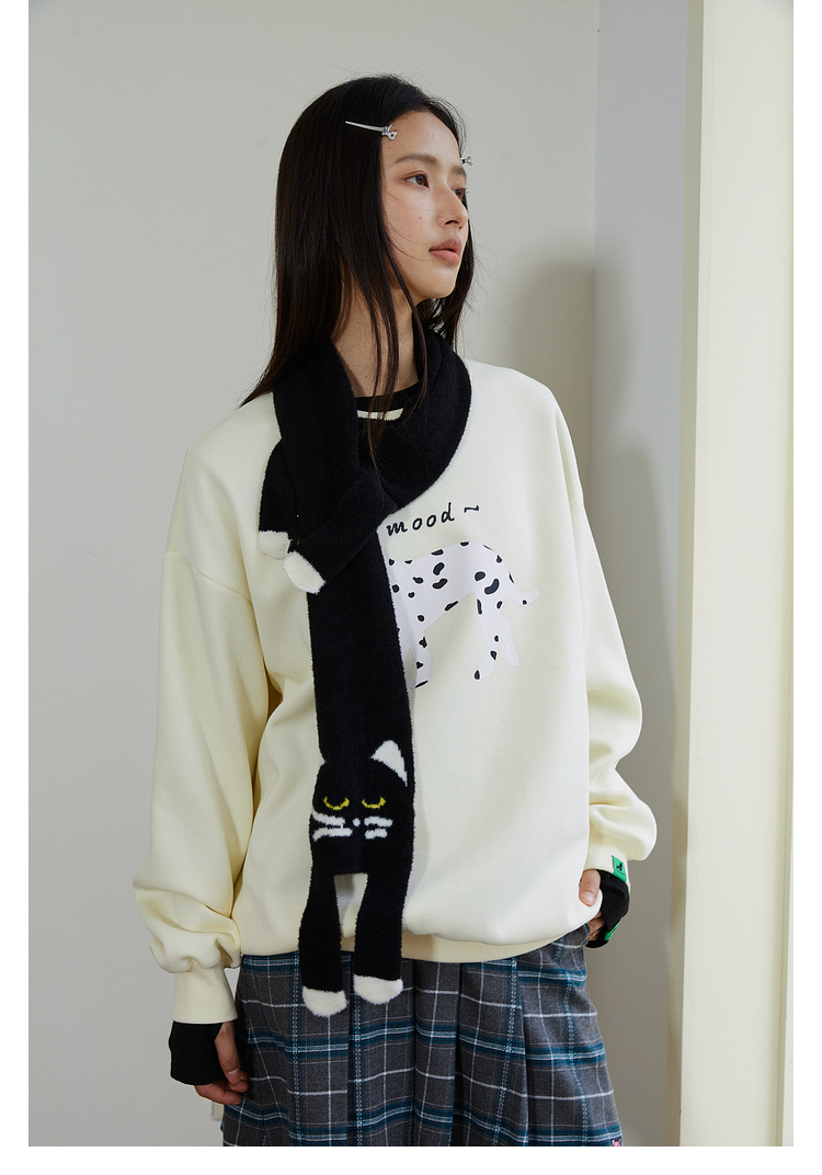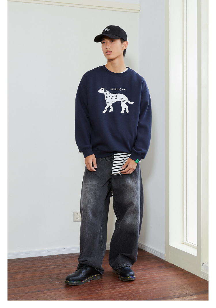 Mood Like Me/MWY2411/斑点狗涂鸦插画圆领毛圈卫衣