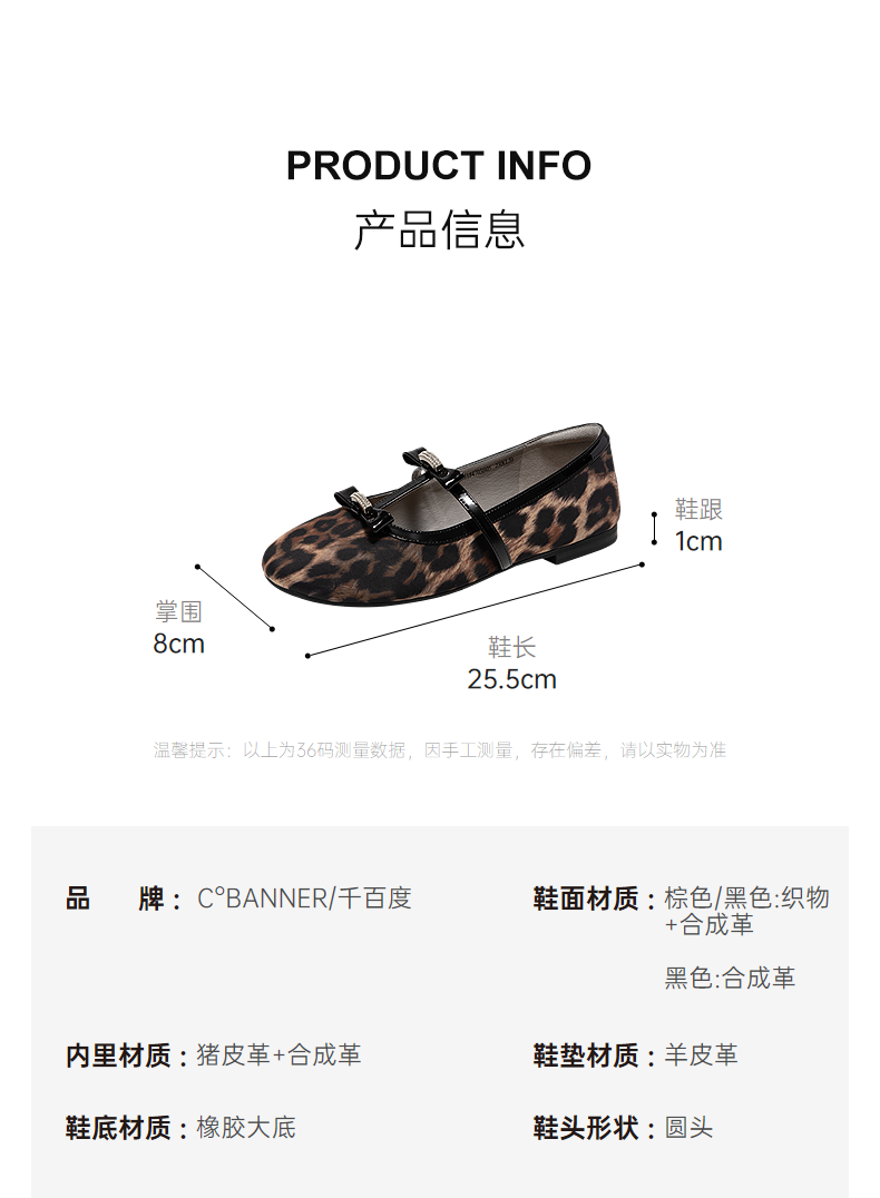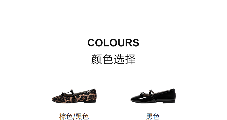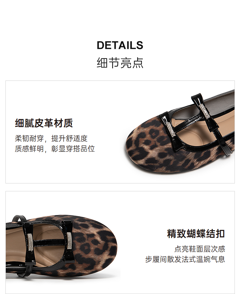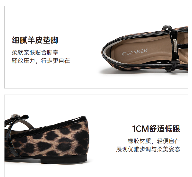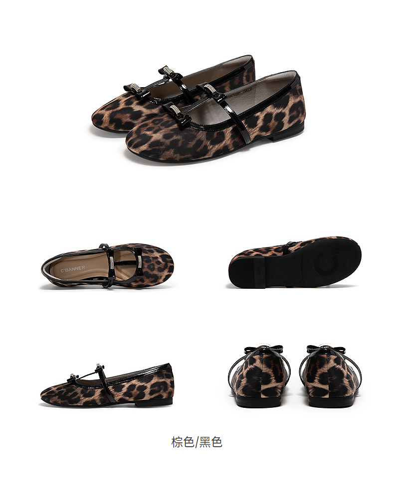 千百度豹纹平底玛丽珍鞋女款高级感浅口羊皮休闲单鞋A25184703