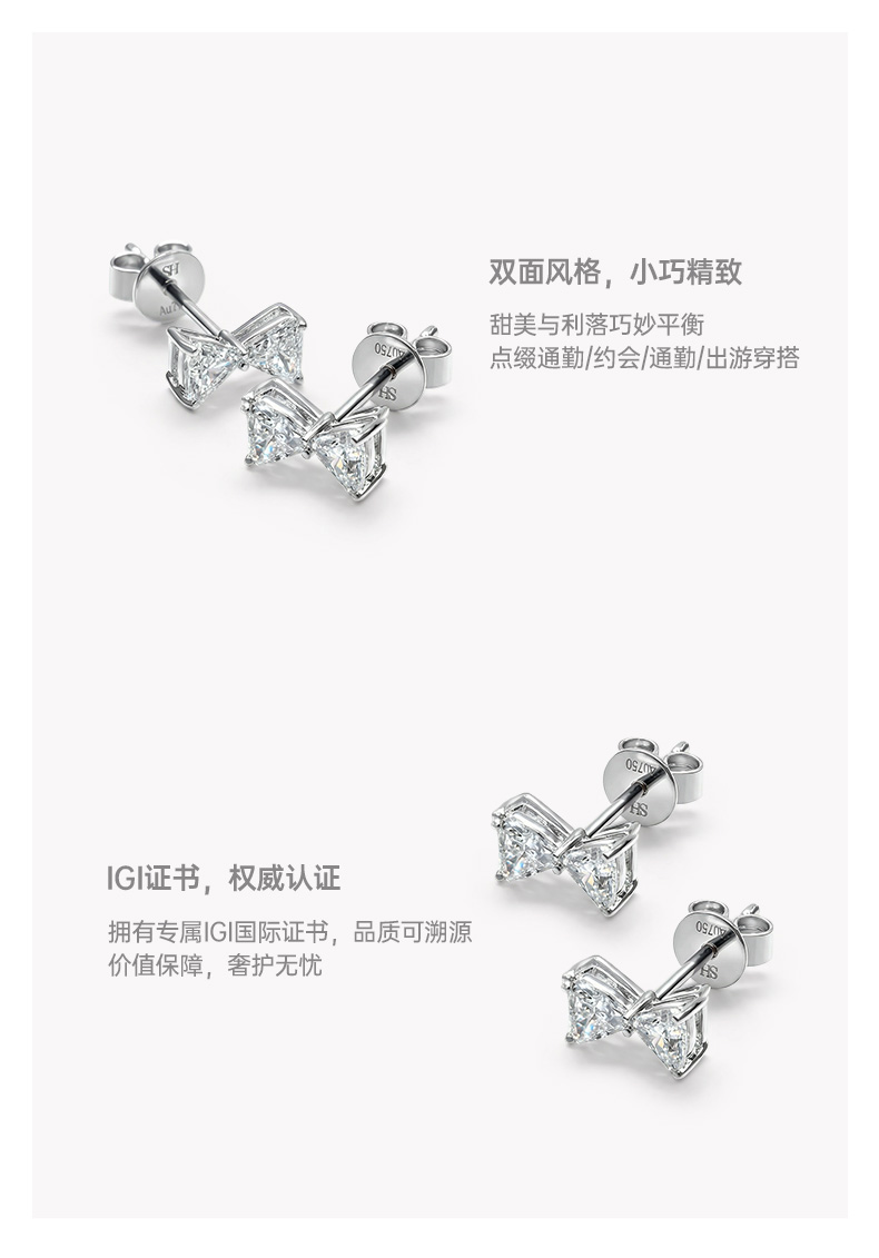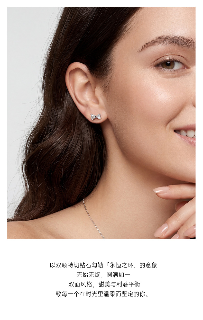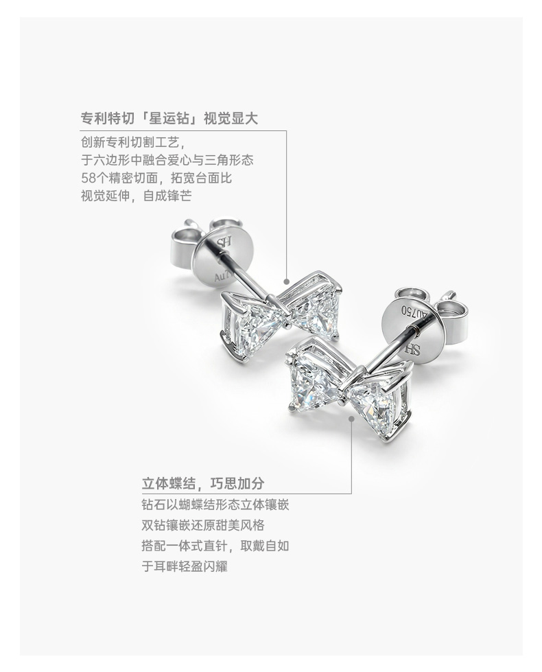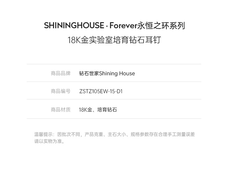 Forever·永恒之环系列 ShiningHouse培育] 18k金钻石耳饰 专利特切星运钻人工真钻人造钻石K金耳饰时尚钻石耳饰耳钉【此商品不支持7天无理由退货退款】30分和60分预计3日发货