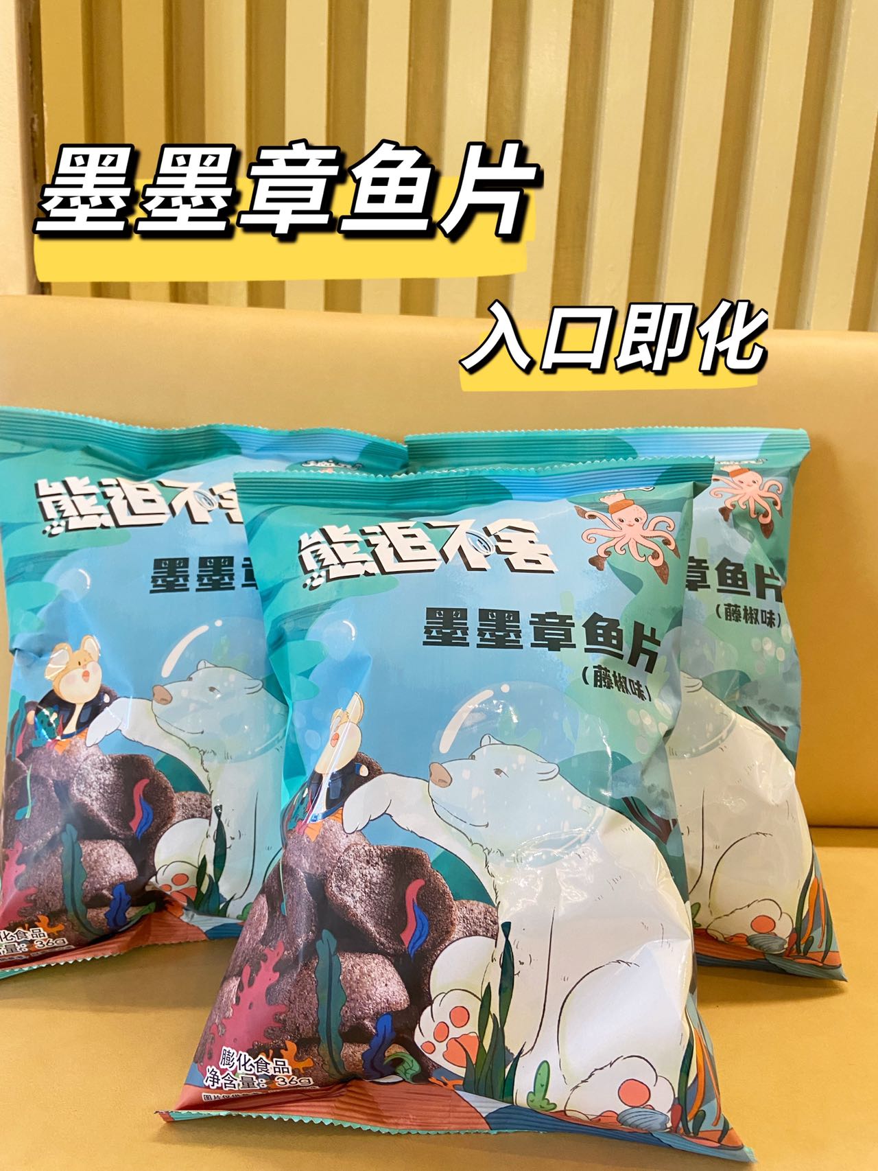 【品名】熊追不舍/泰式鲜虾条、墨墨章鱼片