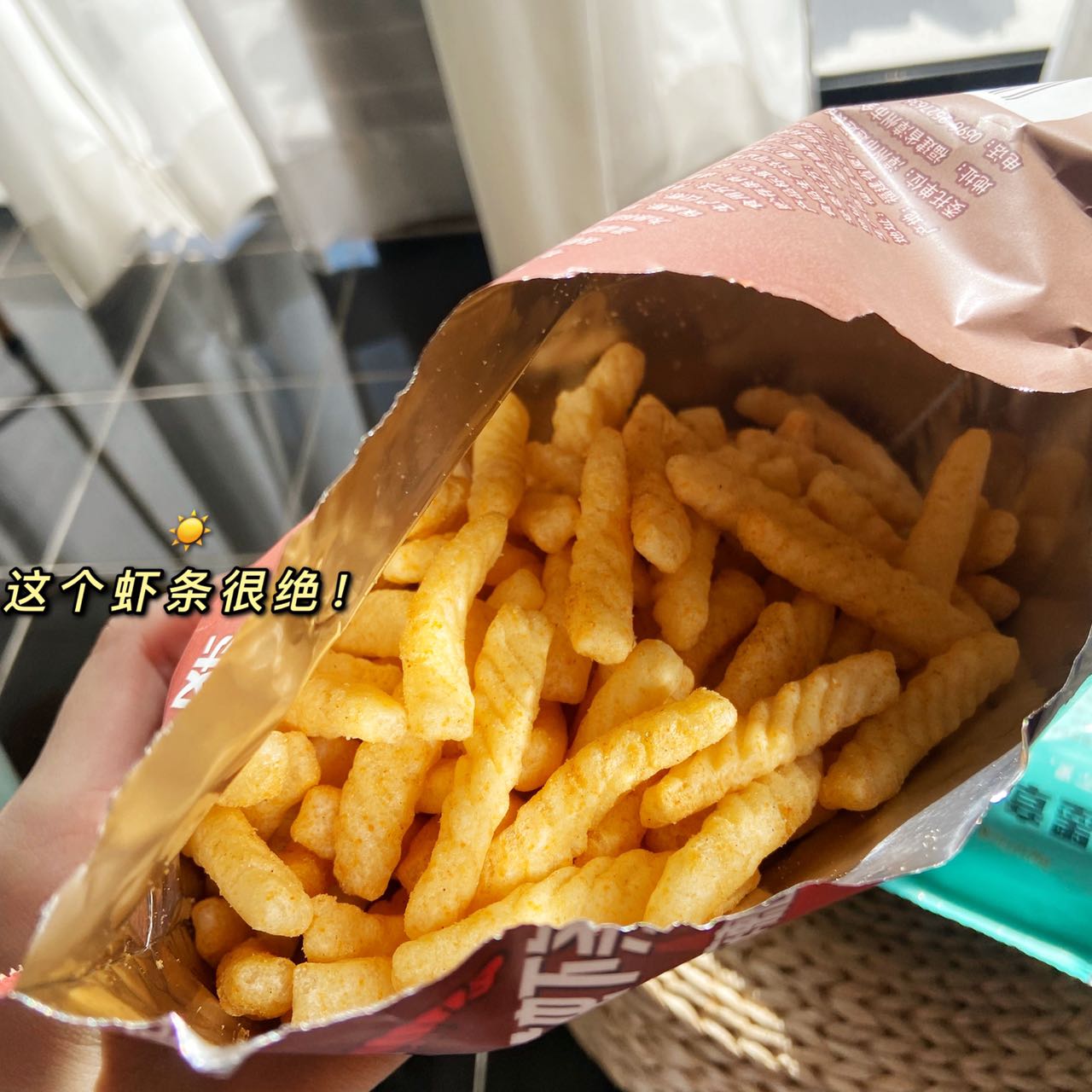 我特别不爱吃油腻且糊嘴的薯条,但是这个鲜虾条真的很可以!它很酥脆不油腻,咸香且不糊嘴。