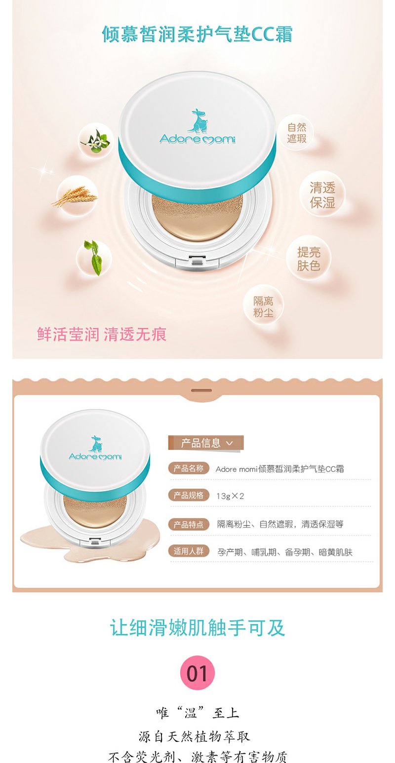 澳大利亚Adore momi/爱迪妈咪 倾慕皙润柔护气垫CC面霜13g*2盒