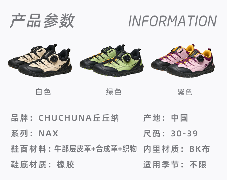 【代发】CHUCHUNA丘丘纳轻量化旋钮户外爬山出行徒步校园运动鞋NAX系列