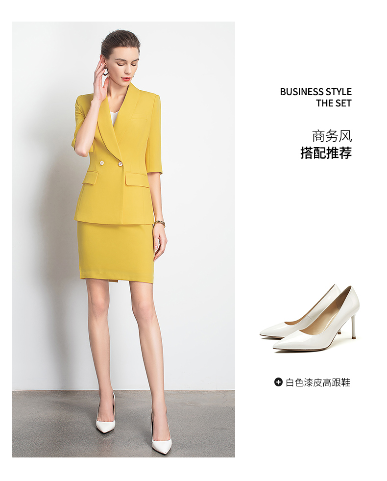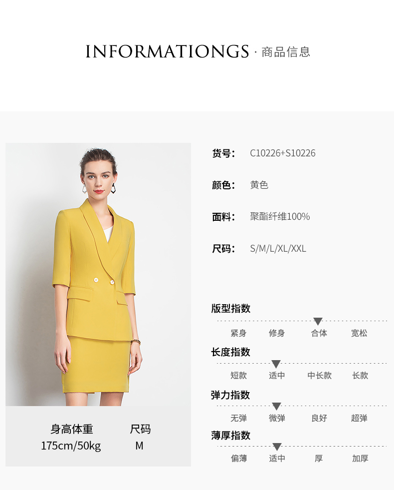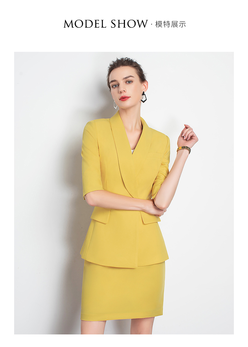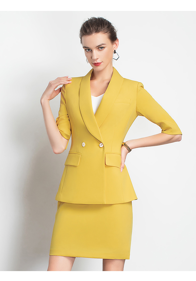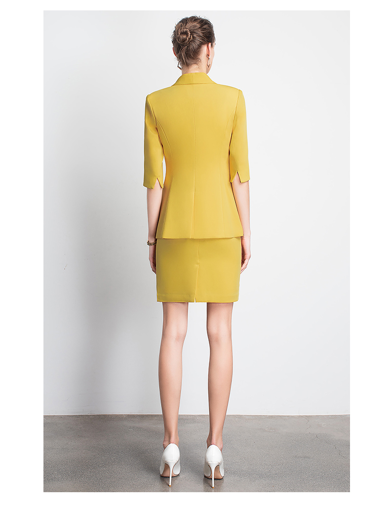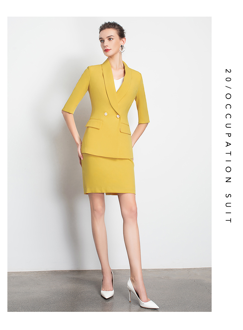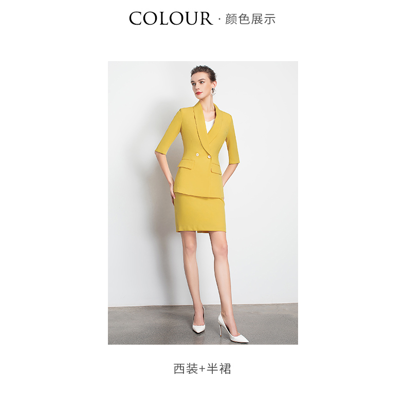 IWY/黄色职业装裙装时尚女神范工作服装名媛小香风包臀OL团队工服C10226+S10226