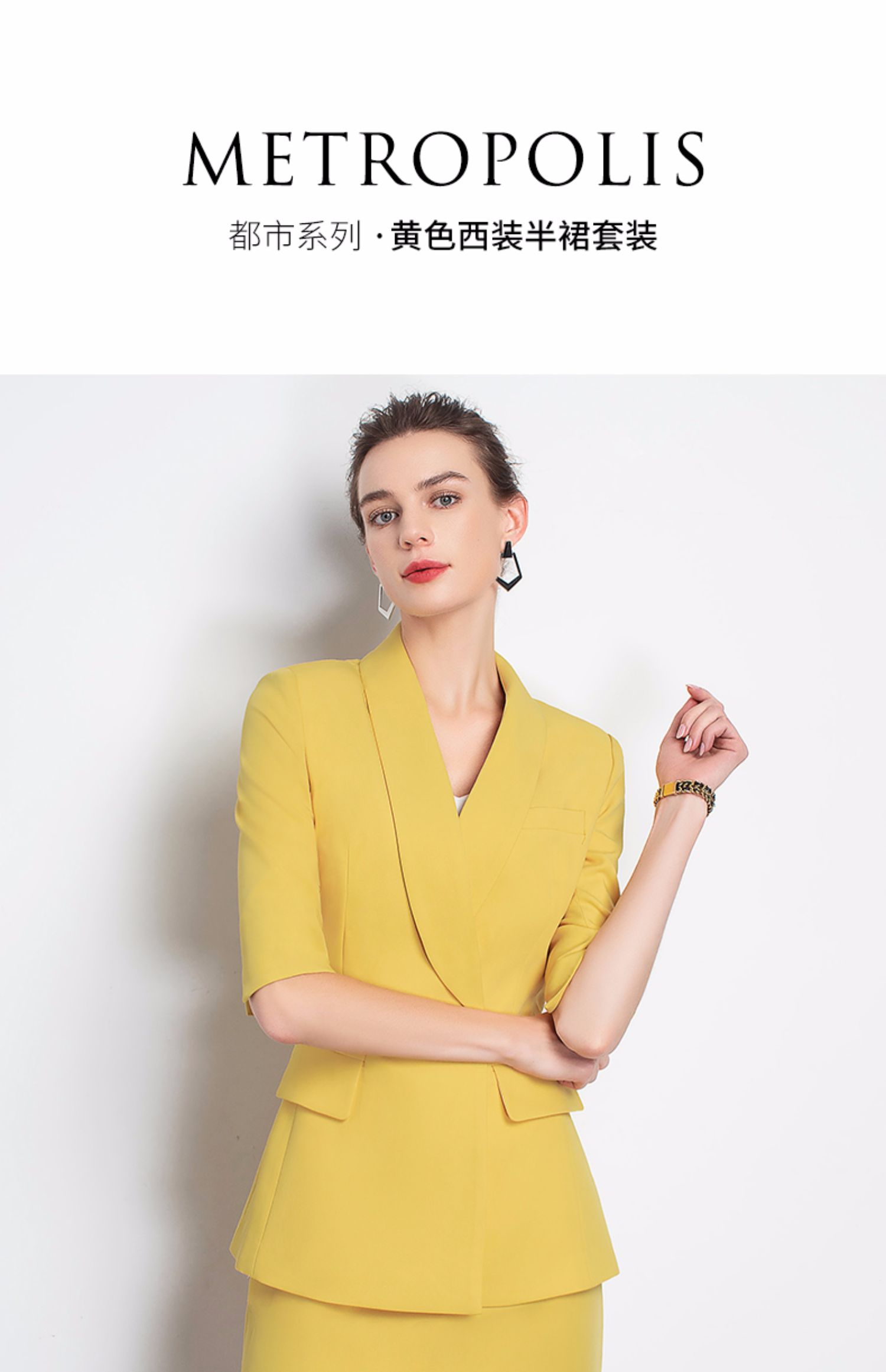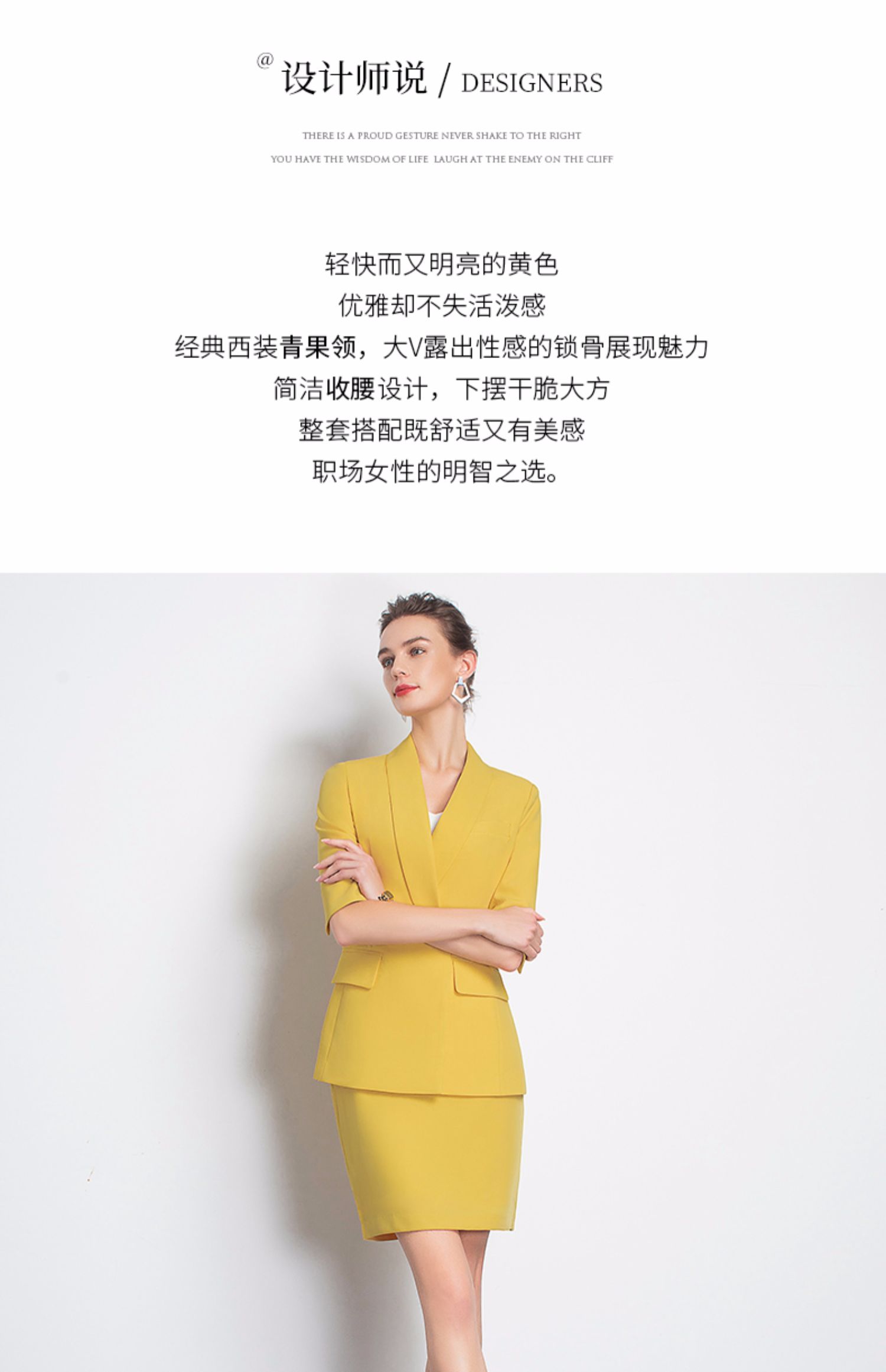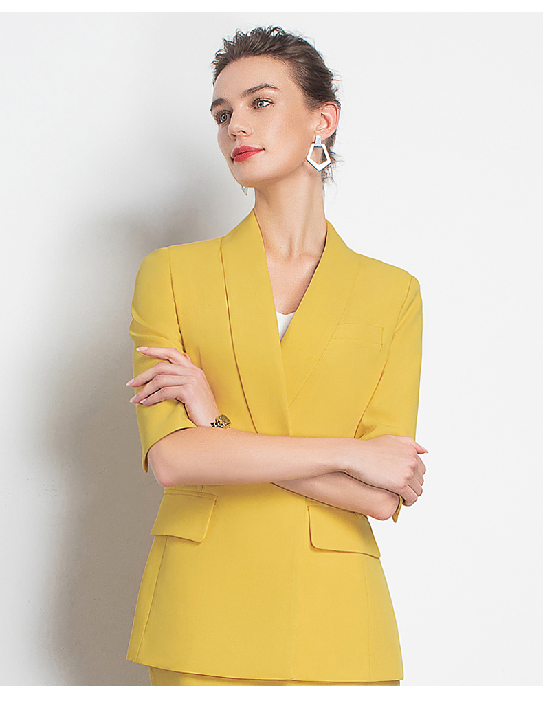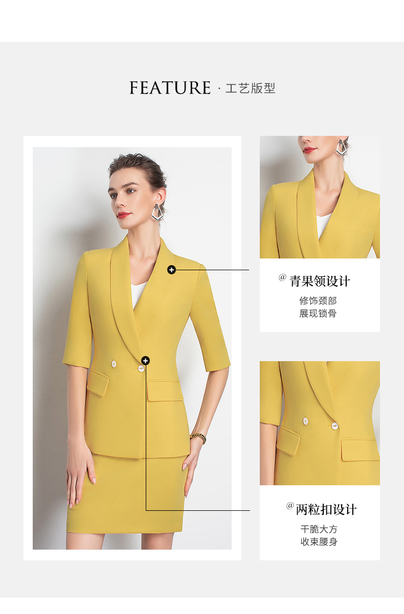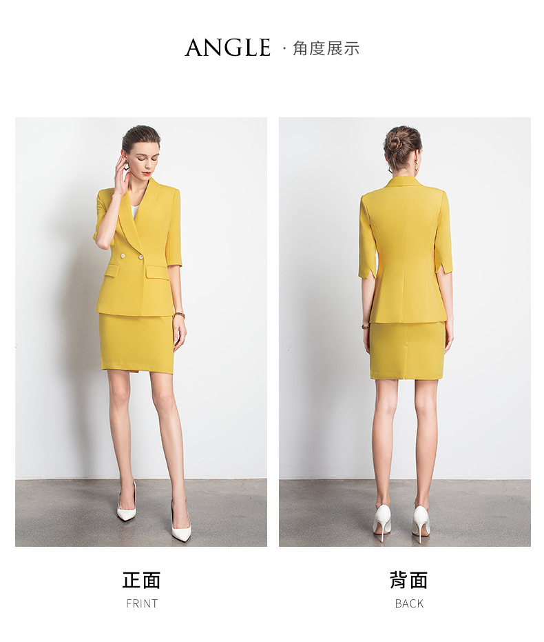 IWY/黄色职业装裙装时尚女神范工作服装名媛小香风包臀OL团队工服C10226+S10226