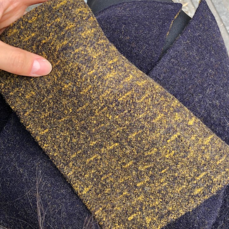 水洗工艺把羊毛处理缩水后,使得面料不是毛茸茸而是紧实的纹理感