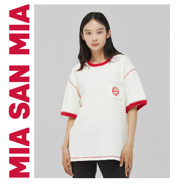 【官方正版】拜仁慕尼黑足球俱乐部|红白拼接线条T恤球迷印花短袖