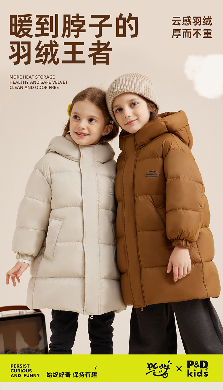 【品牌优选】P儿童三防中长款连帽羽绒服PDWT2302