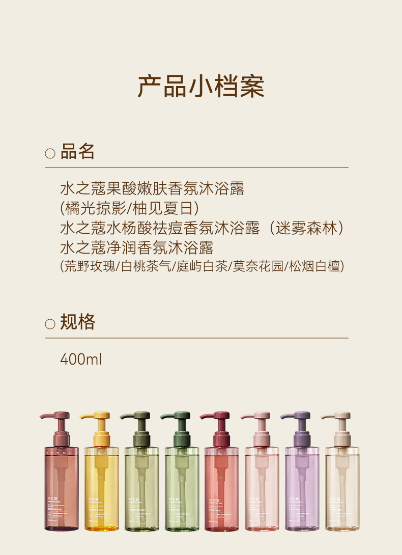 【任2件99元】【会员福利】水之蔻氛沐浴露全系列果酸嫩肤烟酰胺焕采水杨酸祛痘400ml