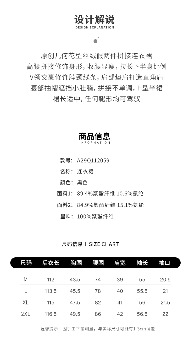 【商场同款】阿菁娜2024秋季新款几何花型丝绒假两件连衣裙A29Q112059