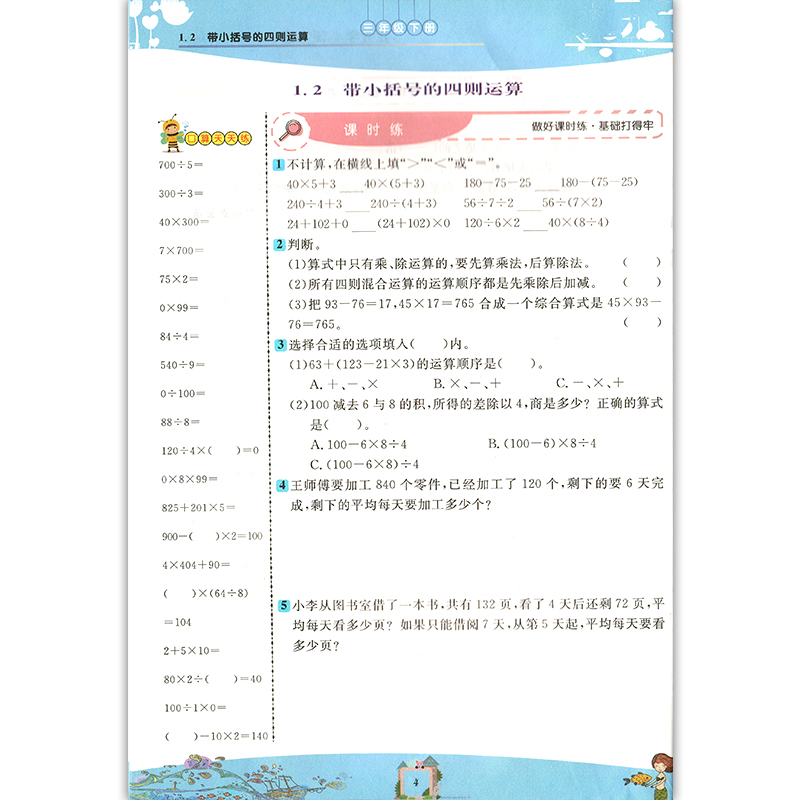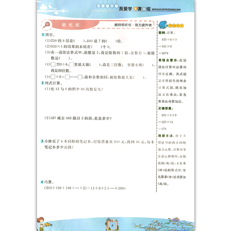 我爱学 一课三练 三年级下 数学 3年级下册第二学期 1课3练与上海市新教材同步配套上海地区专用上海小学教辅课后练习 小学生练习