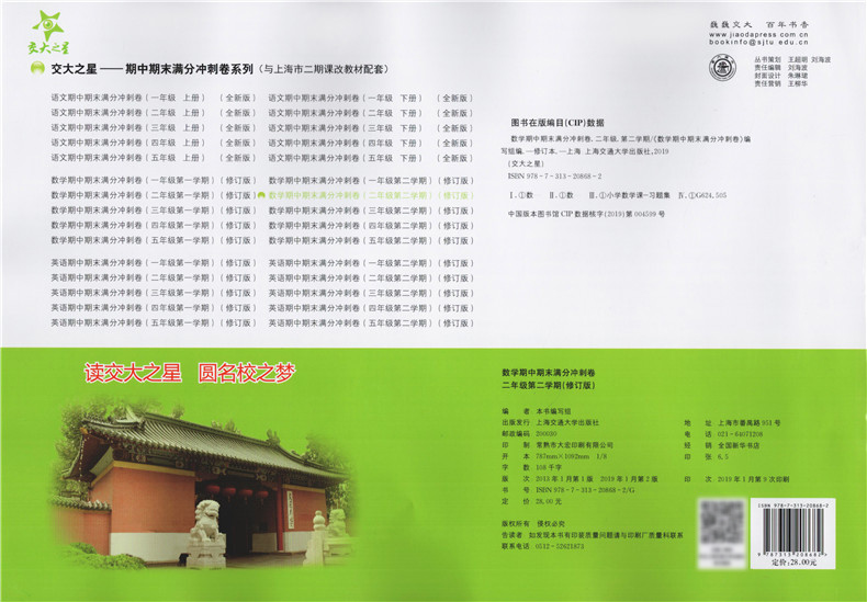 全新修订版 交大之星期中期末满分冲刺卷 数学 2年级下/二年级下册数学第二学期 与上海课改教材配套 紧扣课标考纲 强化思维训练
