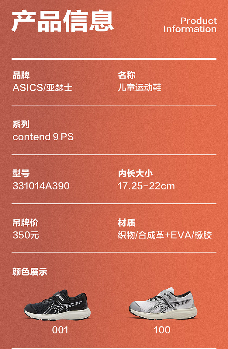 ASICS/亚瑟士童鞋2025年新款男女童运动鞋跑步鞋舒适缓冲CONTEND