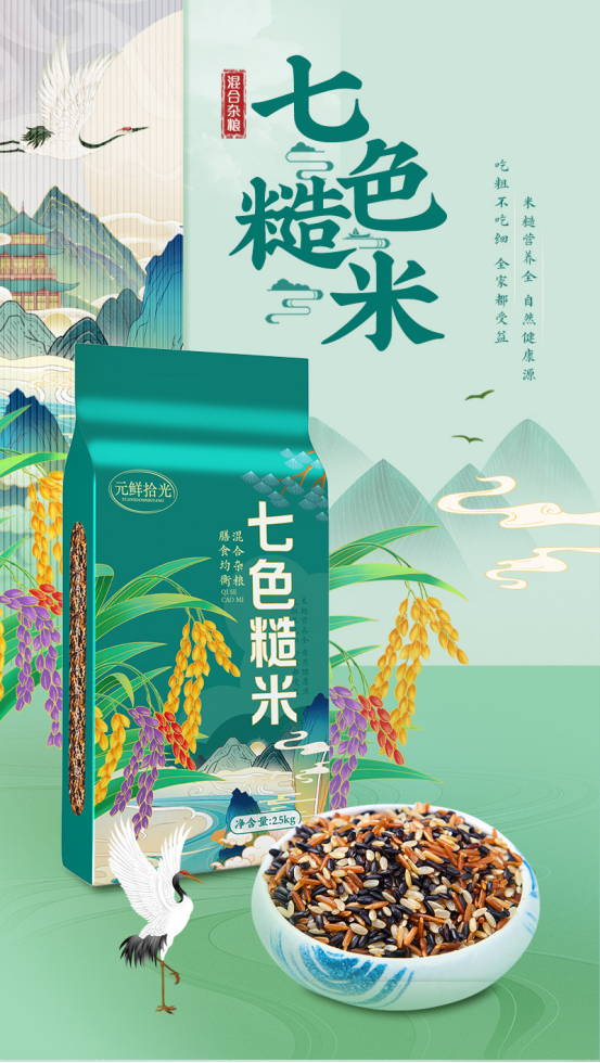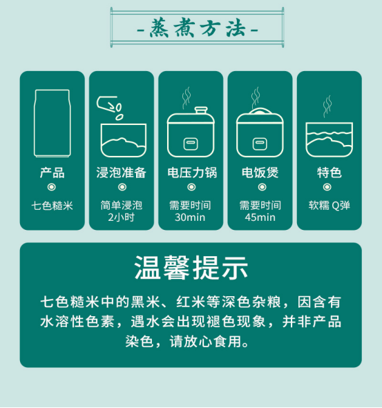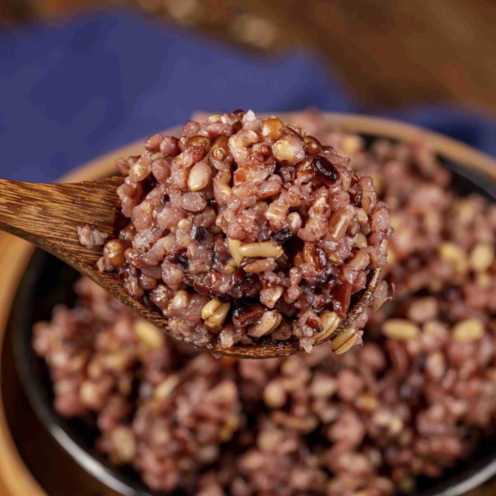 🚩中国营养学会最新《全谷物消费白皮书》强调,每天摄入50-150g全谷物可显著改善肠道健康。 七色糙米采用当季新米现磨,真空锁鲜包装,让营养不流失。