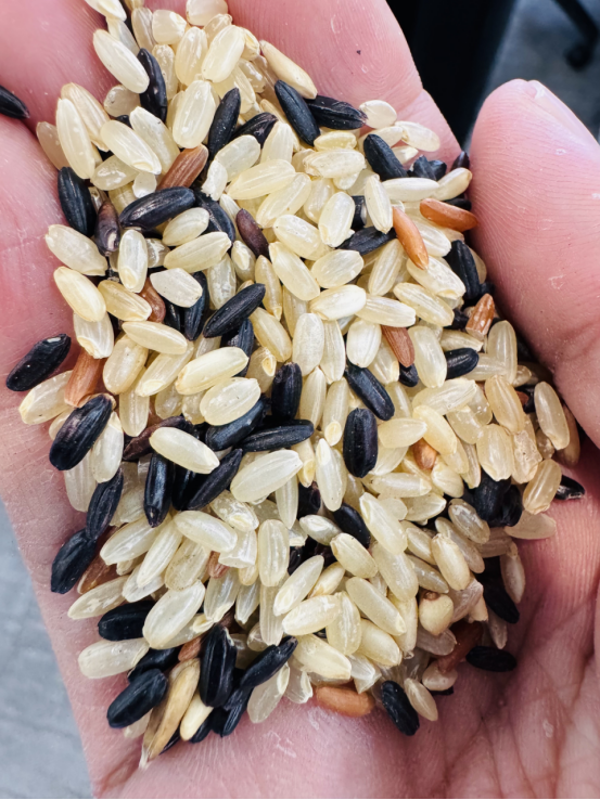 打开袋子,就能看到糙米、黑米、红米、荞麦米、荞麦米、血糯米、紫米,七种米混合在一起, 颜色丰富得像彩虹一样,每一粒都饱满又完整,散发着谷物天然的香气。 煮好的七色糙米,口感软糯有嚼劲,还带着淡淡的清甜。