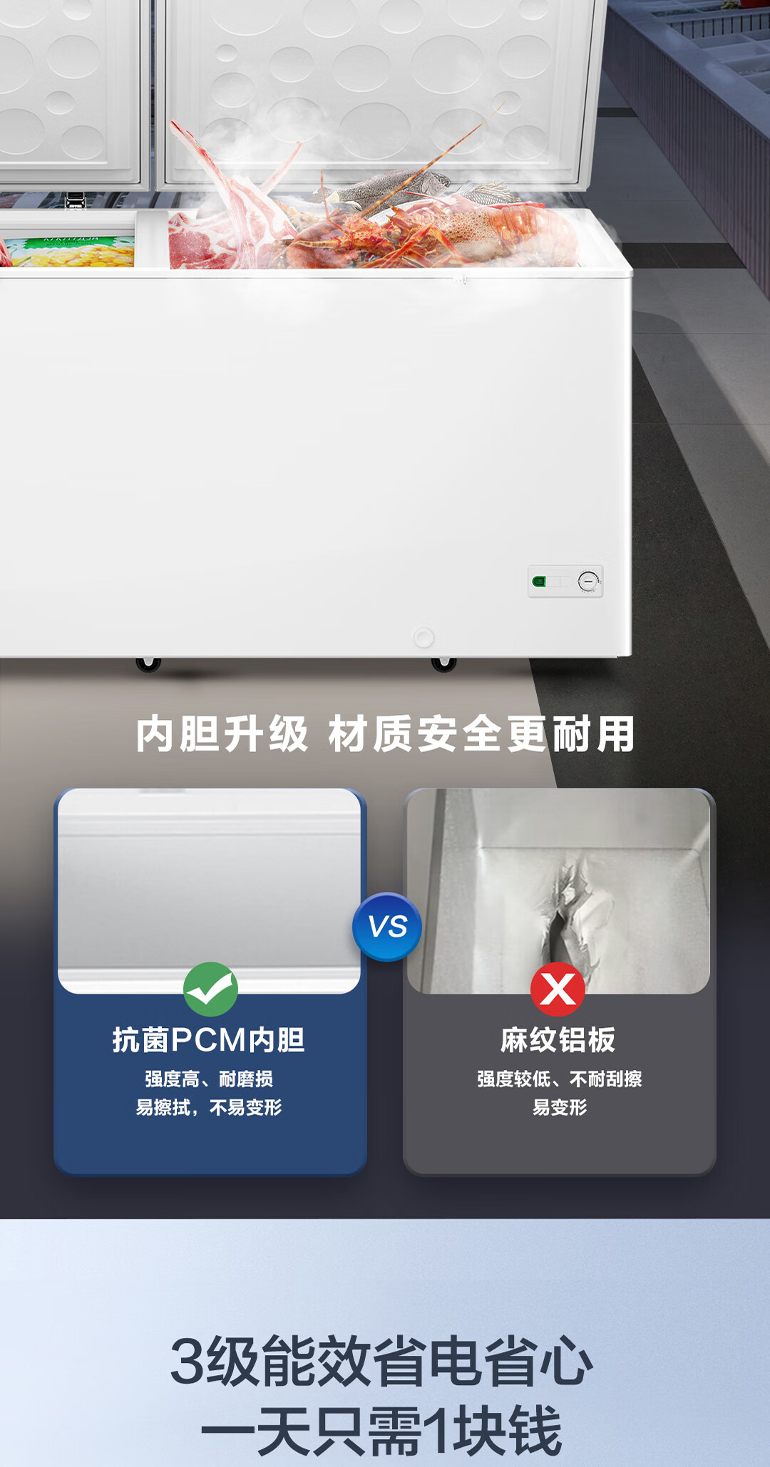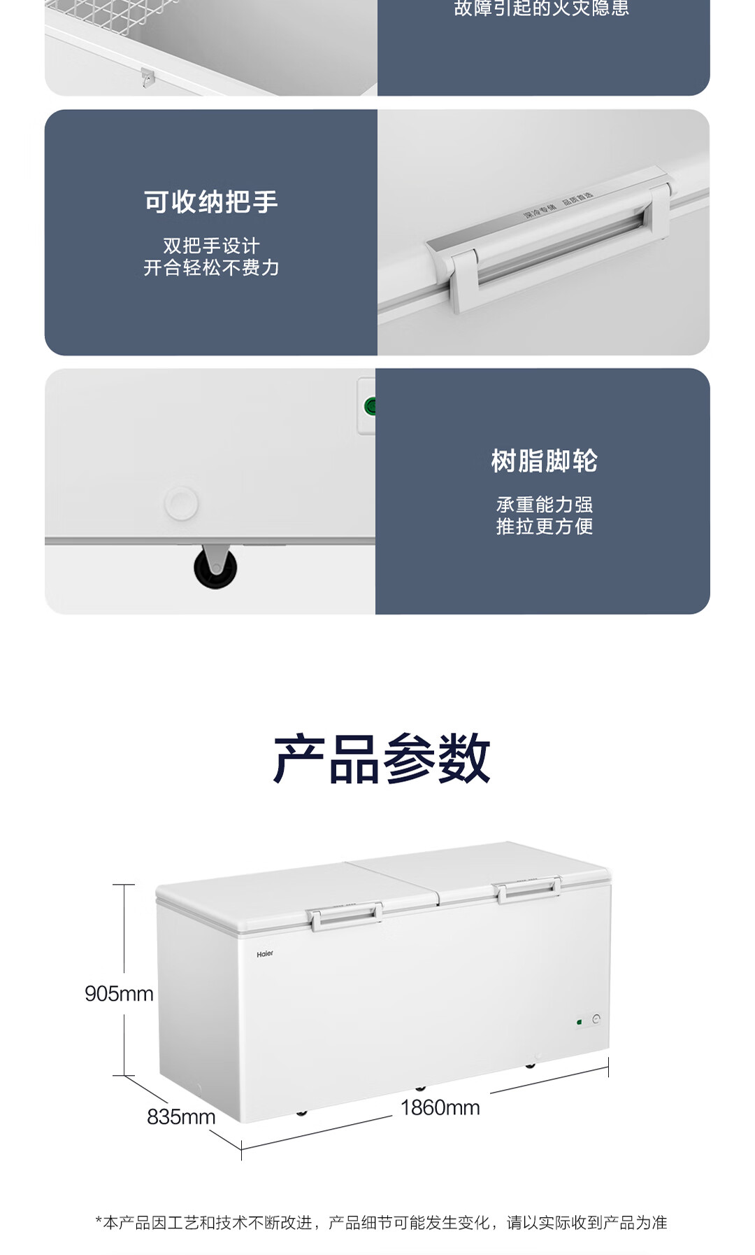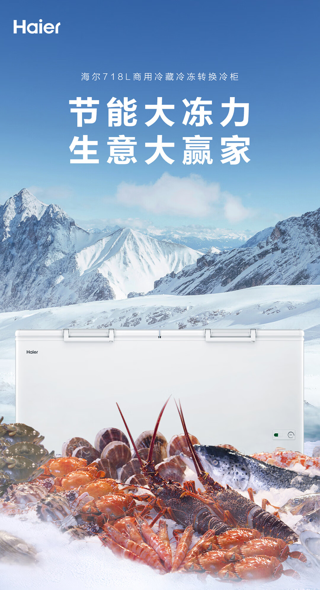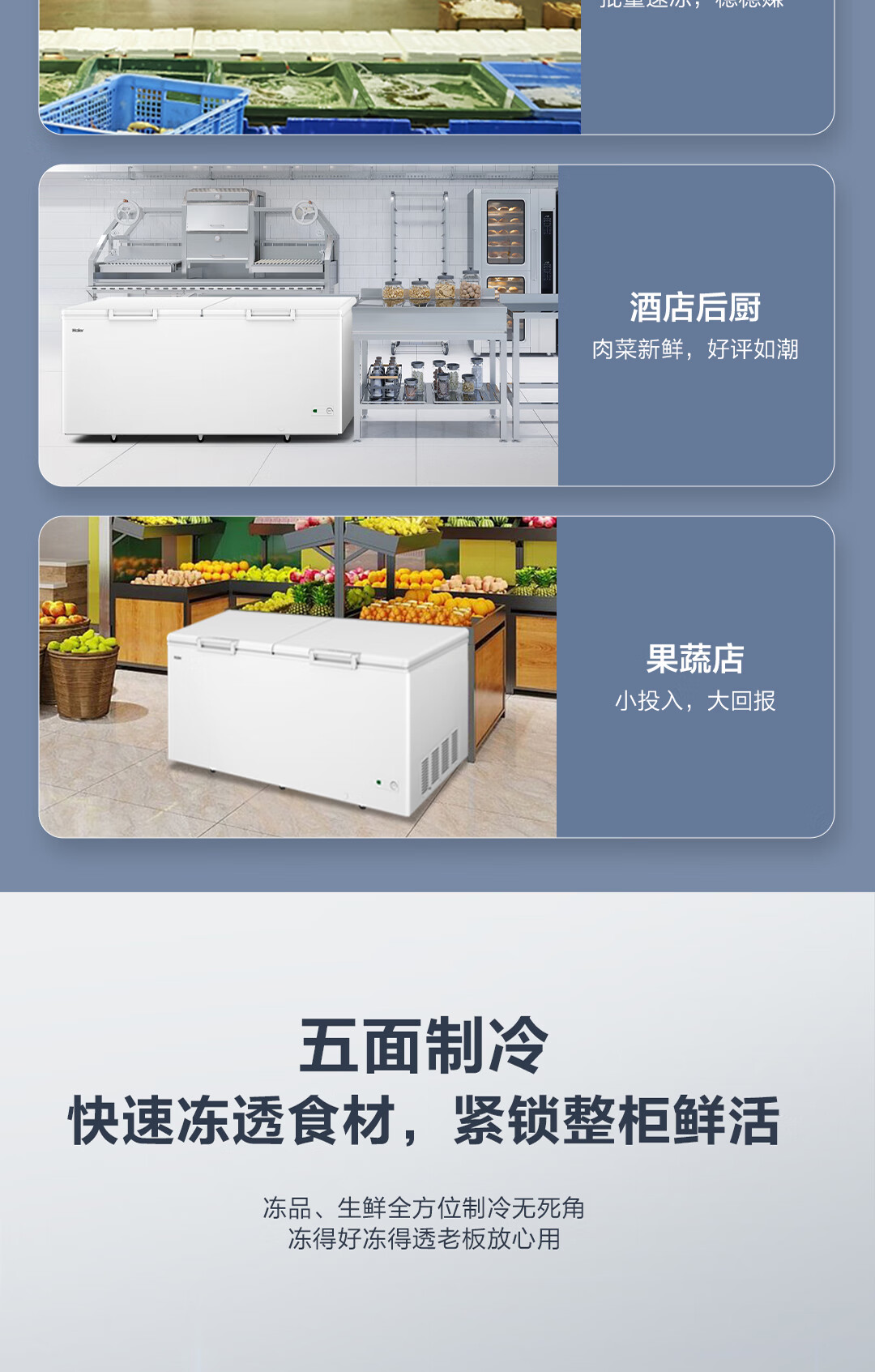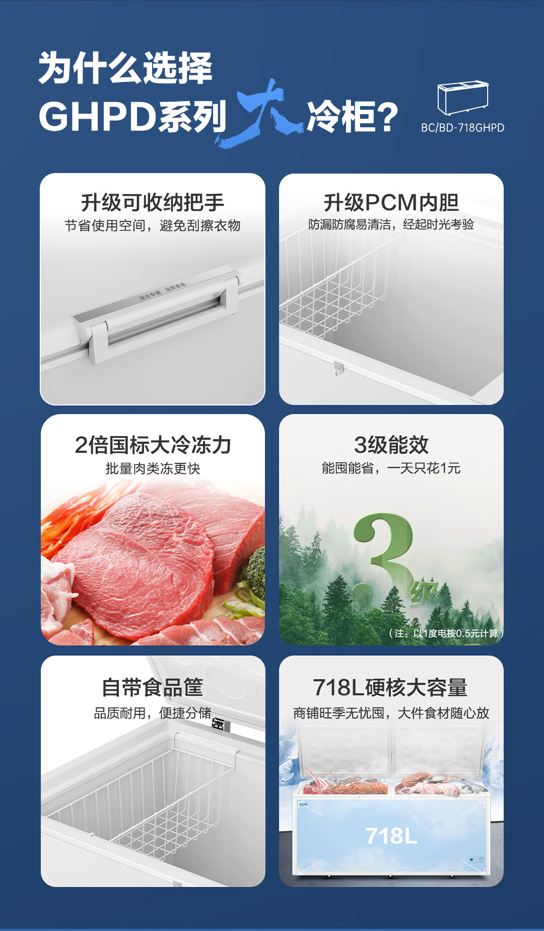 海尔(Haier)718升 卧式商用 家用冰柜 商用大容量 五面制冷 冷藏柜大冷冻柜 PCM内胆 自带食品筐 带轮子 BC/BD-718GHPD