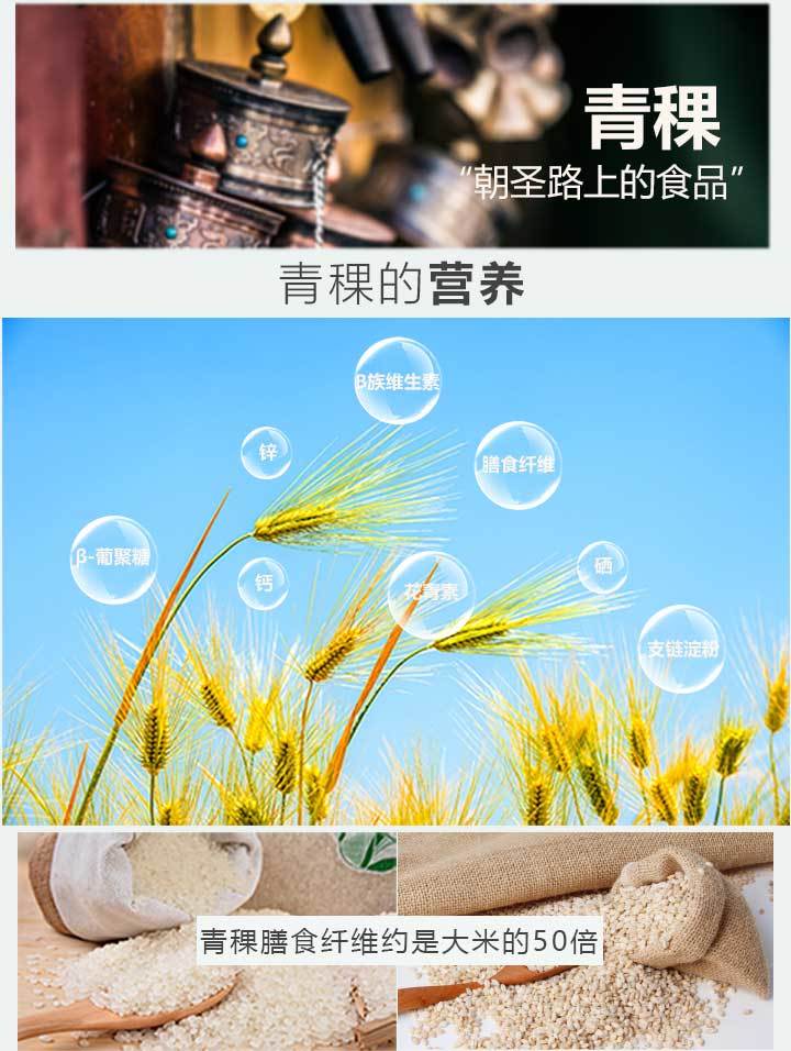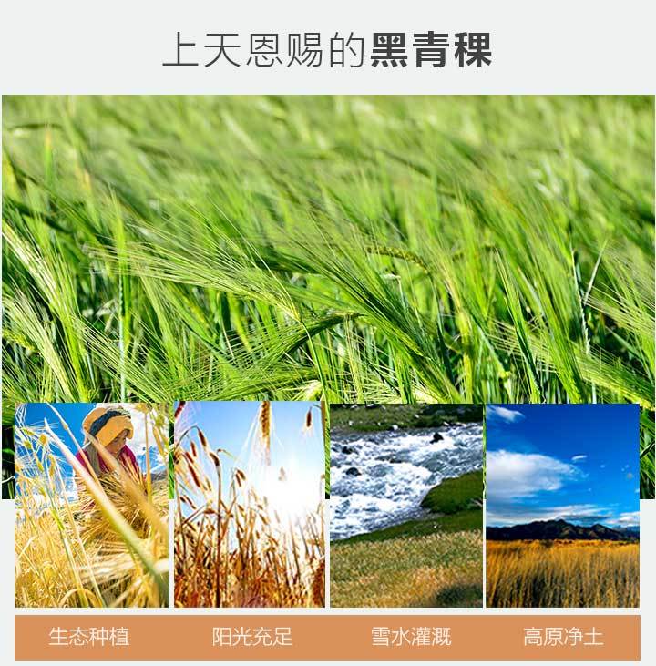 (5)特殊原材料:西藏黑青稞:产自海拔3900米以上青藏高原,富含膳食纤维、β-葡聚糖、花青素、B族维生素,膳食纤维是大米的50倍。