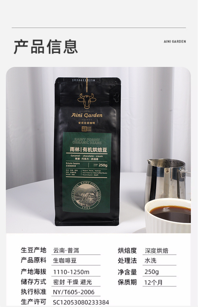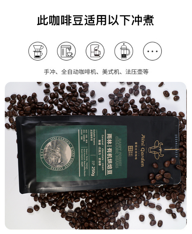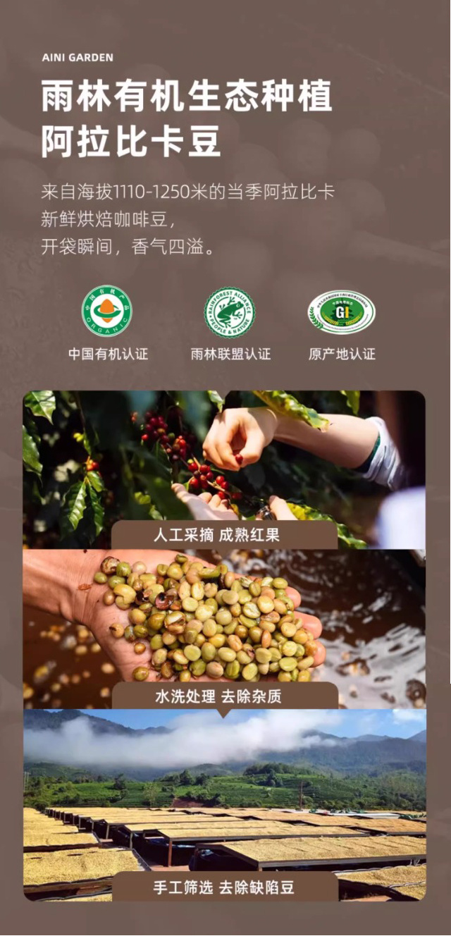 ·有机种植:有机种植过程中不会使用化学肥料和农药,依靠天然肥料和生物防治技术,既保障了咖啡豆的纯净性,也减少了对环境的污染。