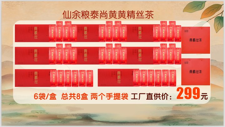 仙余粮泰尚黄精丝茶,6袋*4克/盒,共8盒;手提袋2个