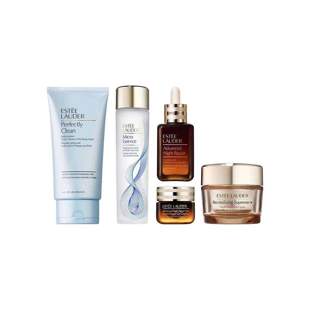 【雅诗兰黛】B1F雅诗兰黛新净莹柔肤洁面乳150ML+经典版微精华露200ML+雅诗兰黛特润修护肌活精华露50ML+雅诗兰黛特润修护肌活精华眼霜15ML+雅诗兰黛智妍紧塑精华乳霜75ML