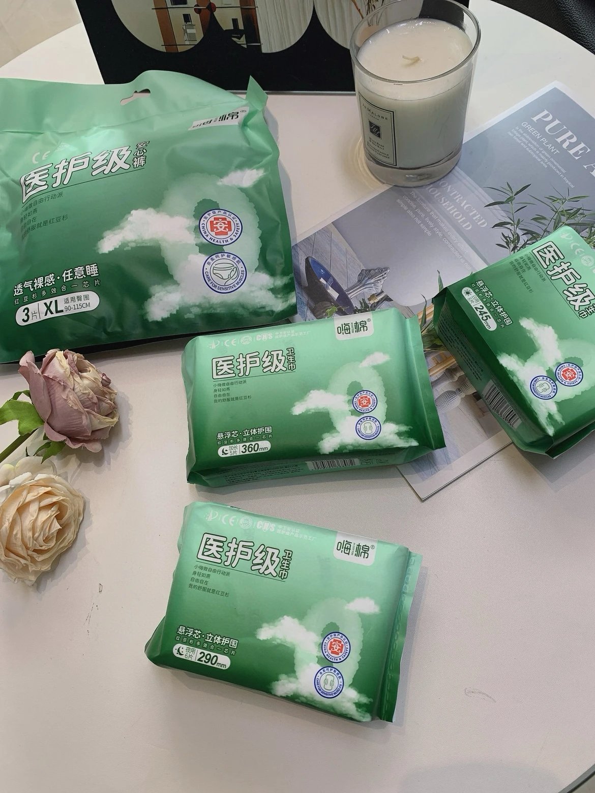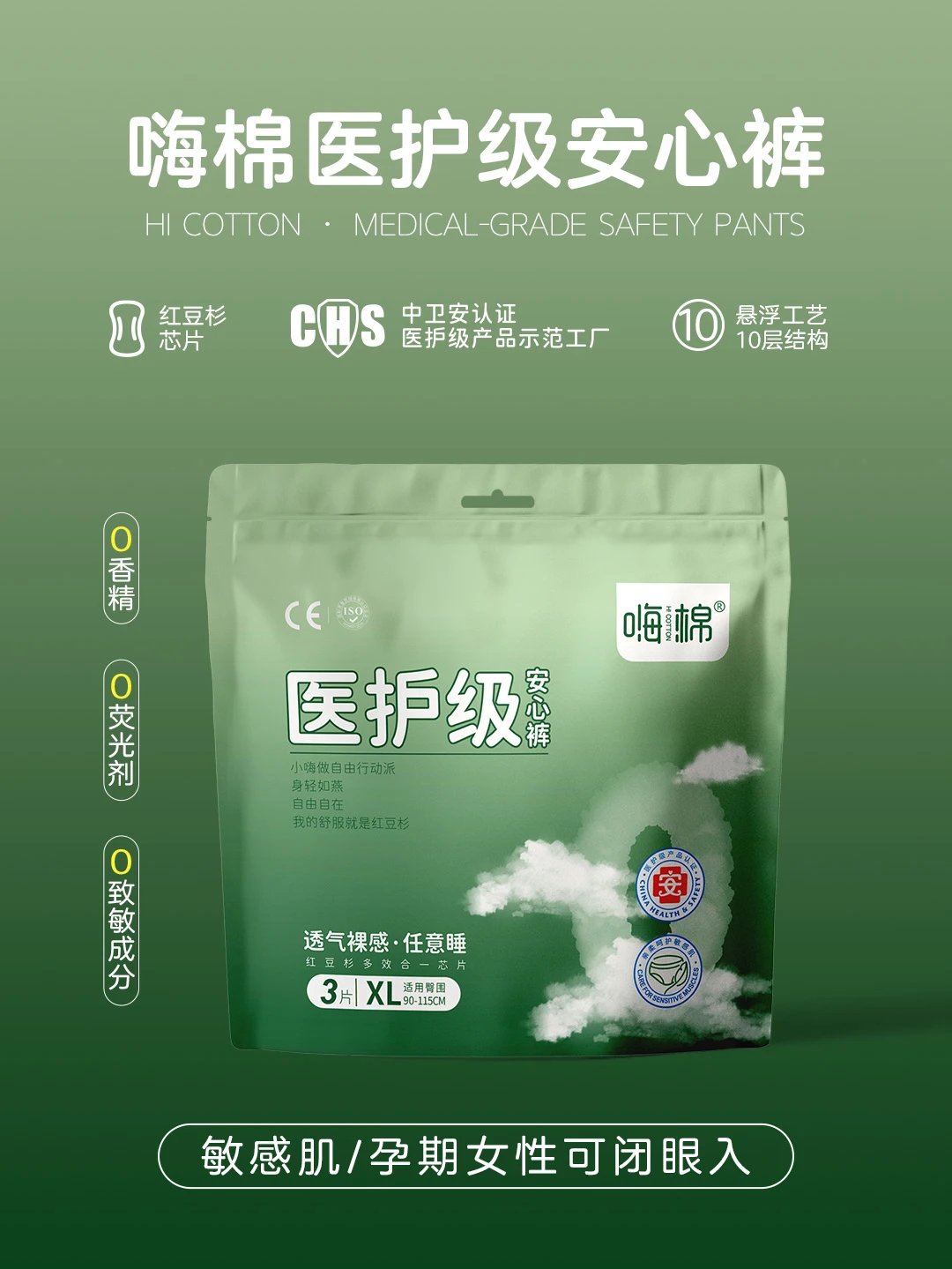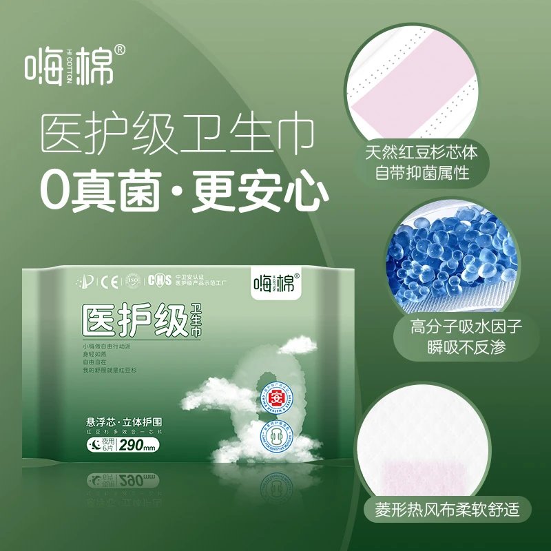 敏感肌福音|云朵触感表层亲肤0刺激!医护级认证+立体瞬吸通道,再大流量也不反渗。红豆杉天然防护层,特殊时期也要享受呼吸感体验~