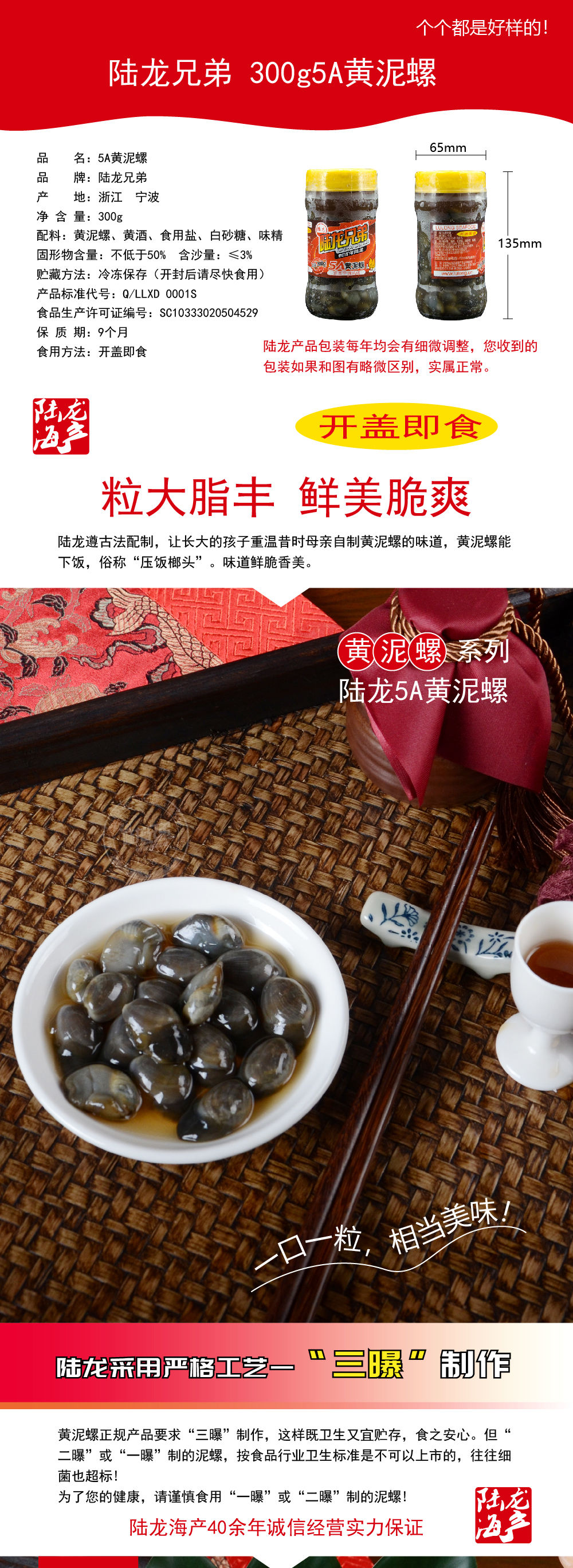 6017陆龙兄弟300g 5A黄泥螺