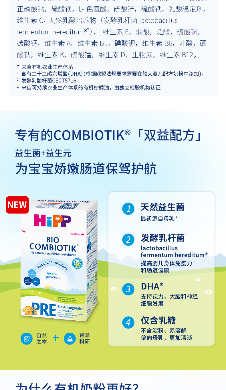 HNMG 德国喜宝添加益生菌新生儿奶粉Hipp pre段(0-6个月)600g