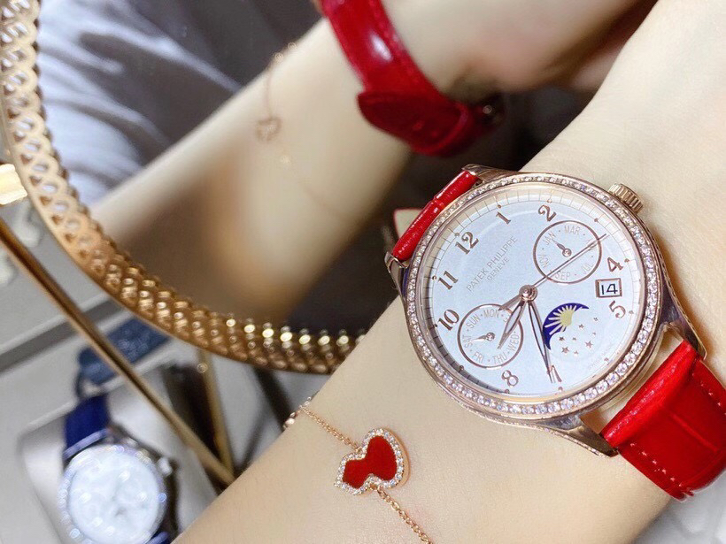 百达翡丽Patek Philippe 4947万年历女表[爱心]小红书爆款[爱心] PP多功能腕表 搭载原装进口9100月相功能机芯机械表⚙️走时精准零返修,表盘上采用罗马数字作为刻度更显示出这款腕表的华贵气质[呲牙]表壳镶嵌141颗钻石、皮带采用进口方形鳞纹牛皮表带 表镜采用蓝宝石镜面 透视底盖 生活防水30米直径35mmx10mm,腕表功能汇集星期,月份,日期,月亮,太阳等功能于一身,最佳女士腕表真正的富家女标配 为高端腕表的代表之作 尊贵彰显之美誉细节之处透露女士高贵,品位十分,匠心巨制 大气媲美原装货!实物拍摄,品质如一!百达翡丽Patek Philippe 4947万年历女表[爱心]小红书爆款[爱心] PP多功能腕表 搭载原装进口9100月相功能机芯机械表⚙️走时精准零返修,表盘上采用罗马数字作为刻度更显示出这款腕表的华贵气质[呲牙]表壳镶嵌141颗钻石、皮带采用进口方形鳞纹牛皮表带 表镜采用蓝宝石镜面 透视底盖 生活防水30米直径35mmx10mm,腕表功能汇集星期,月份,日期,月亮,太阳等功能于一身,最佳女士腕表真正的富家女标配 为高端腕表的代表之作 尊贵彰显之美誉细节之处透露女士高贵,品位十分,匠心巨制 大气媲美原装货!实物拍摄,品质如一!