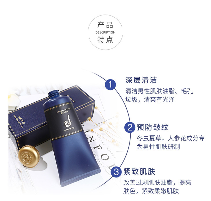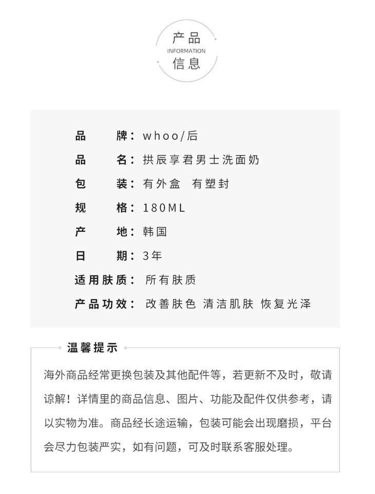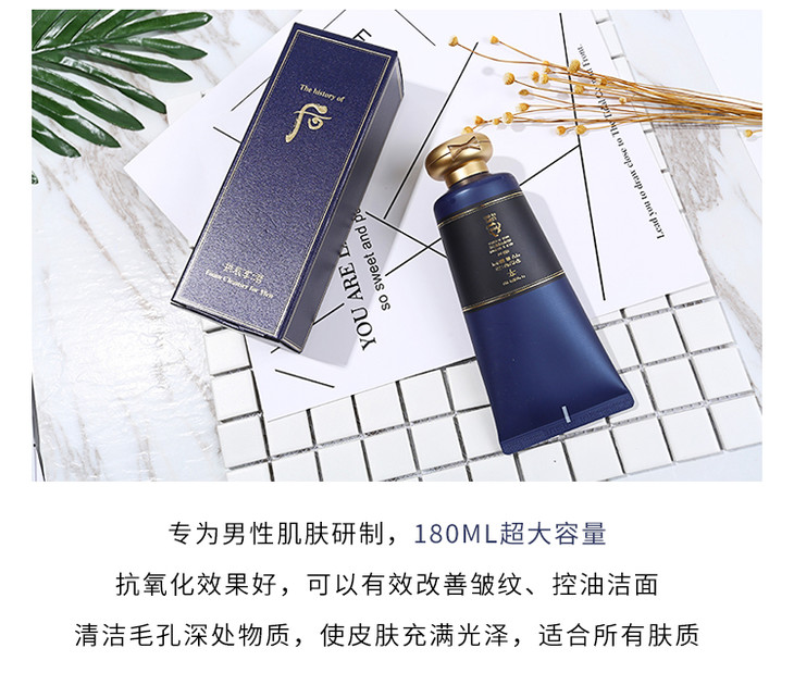 WHOO/whoo 后拱辰享君男士洗面奶洁面乳 清爽补水保湿控油 男士专用泡 沫洁面膏180ml