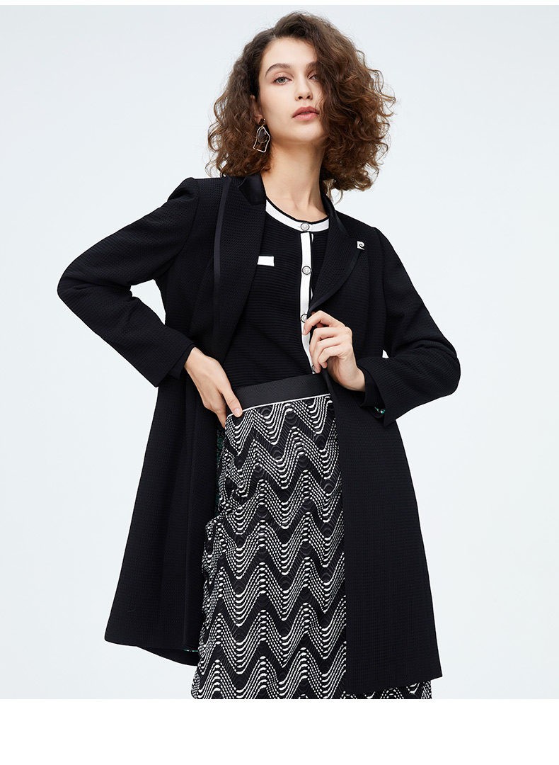 皮尔卡丹女装季新款短袖浅蓝色风衣外套气质时尚中长款开衫
