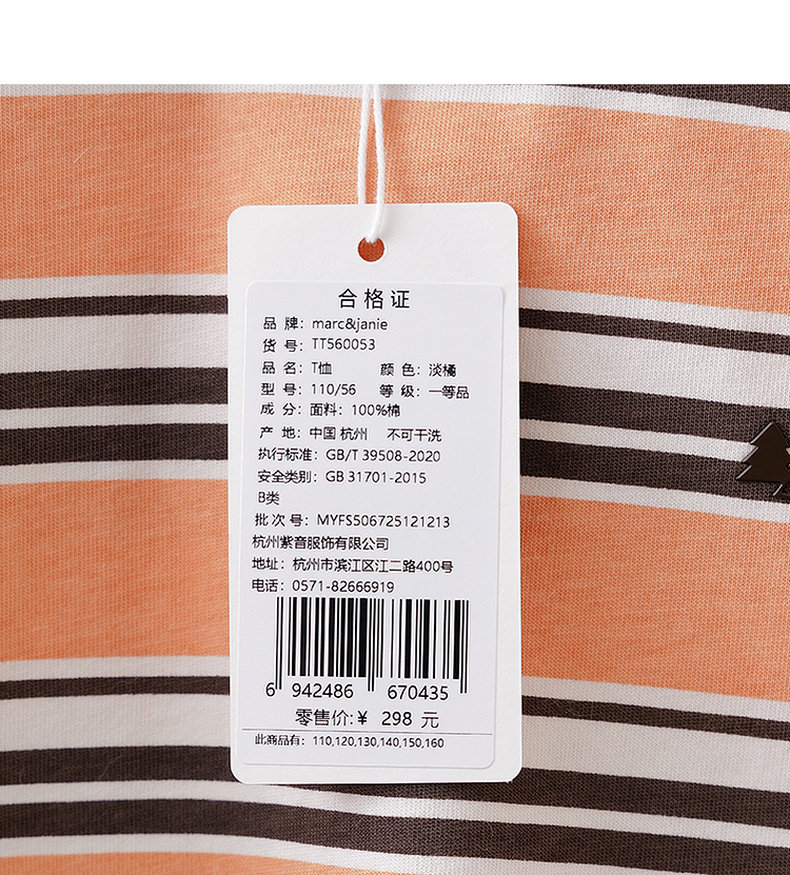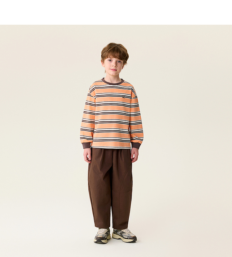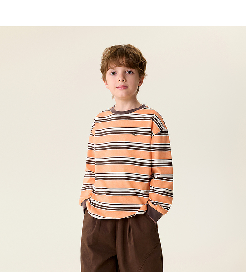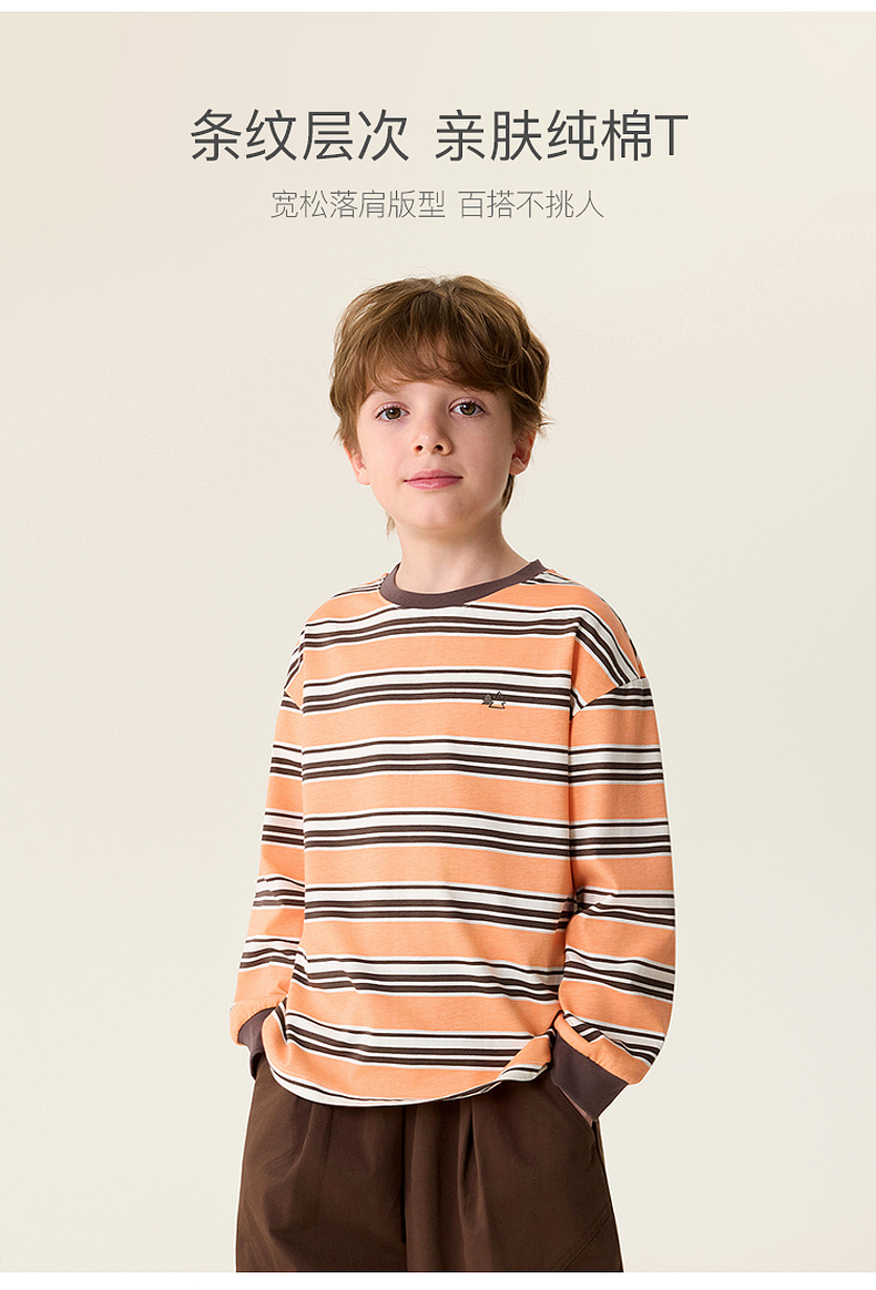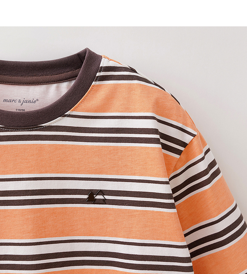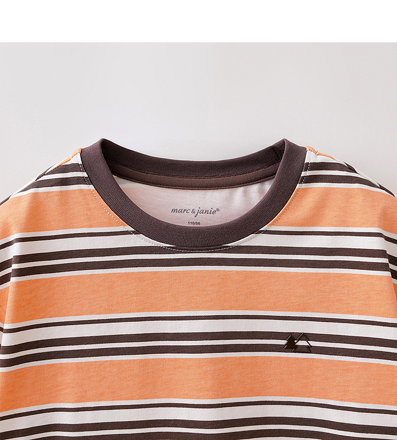 马克珍妮条纹层次男童亲肤纯棉T恤2026年春装新款560053