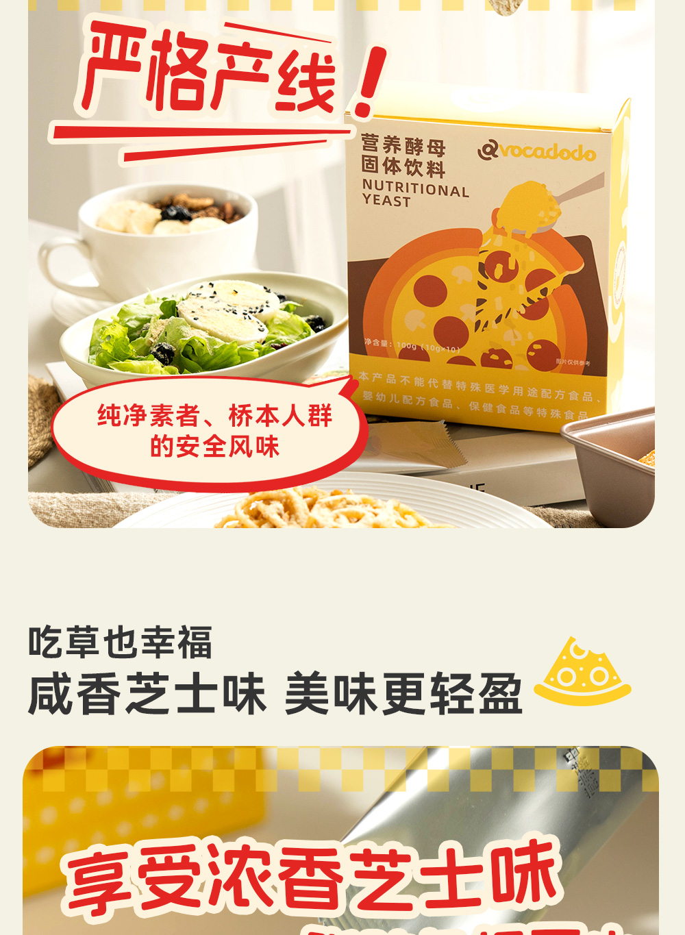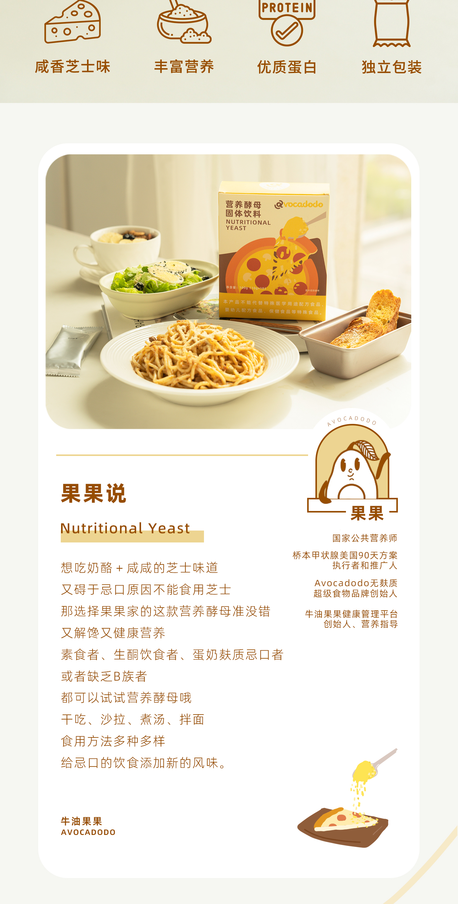 Avocadodo营养酵母粉素食芝士10条生酮烘焙沙拉维B牛油果果桥本