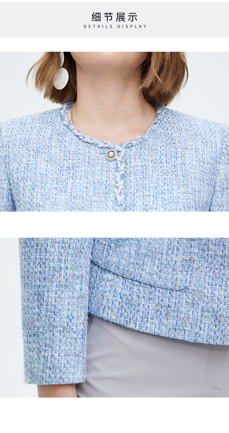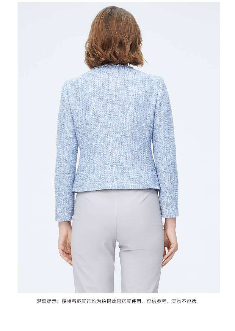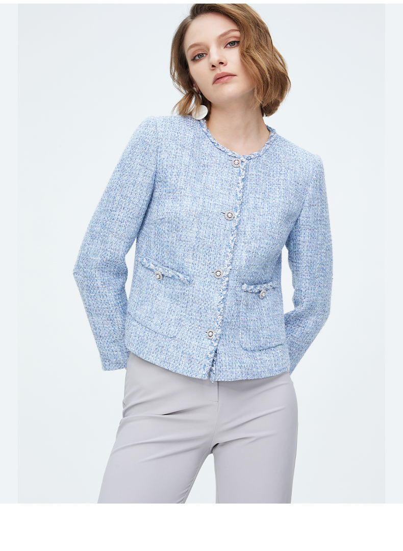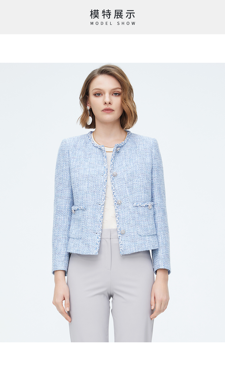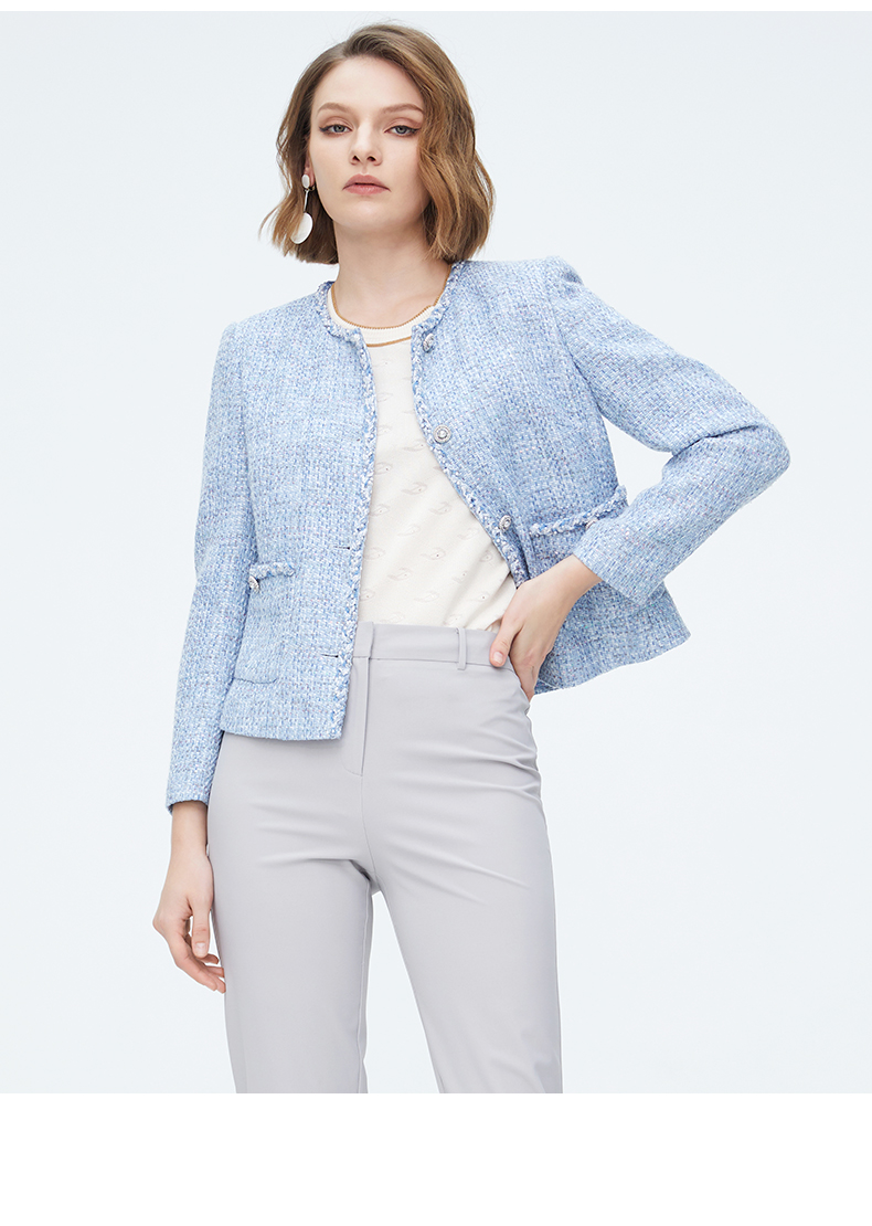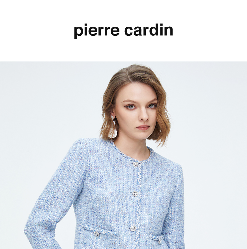 皮尔卡丹女装天蓝色淑女小香风短款外套P4112U4007L3