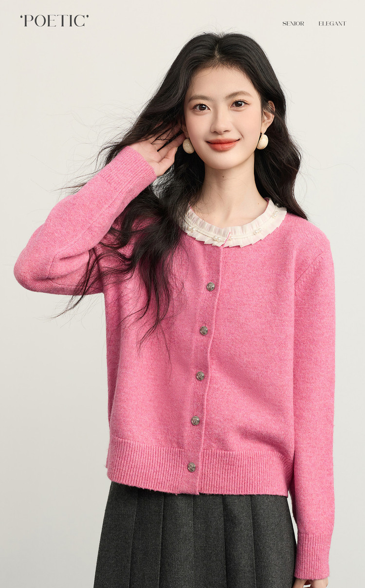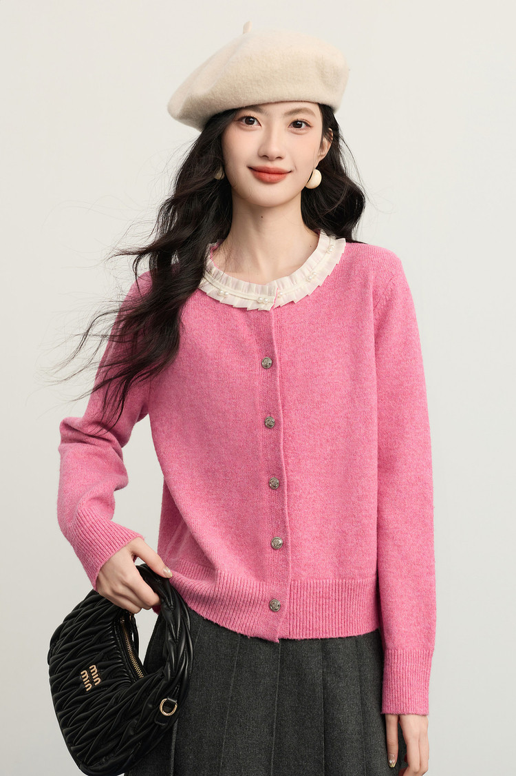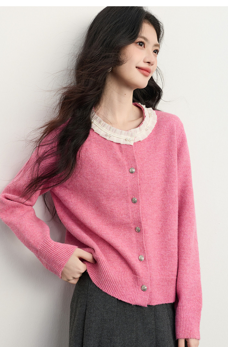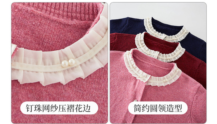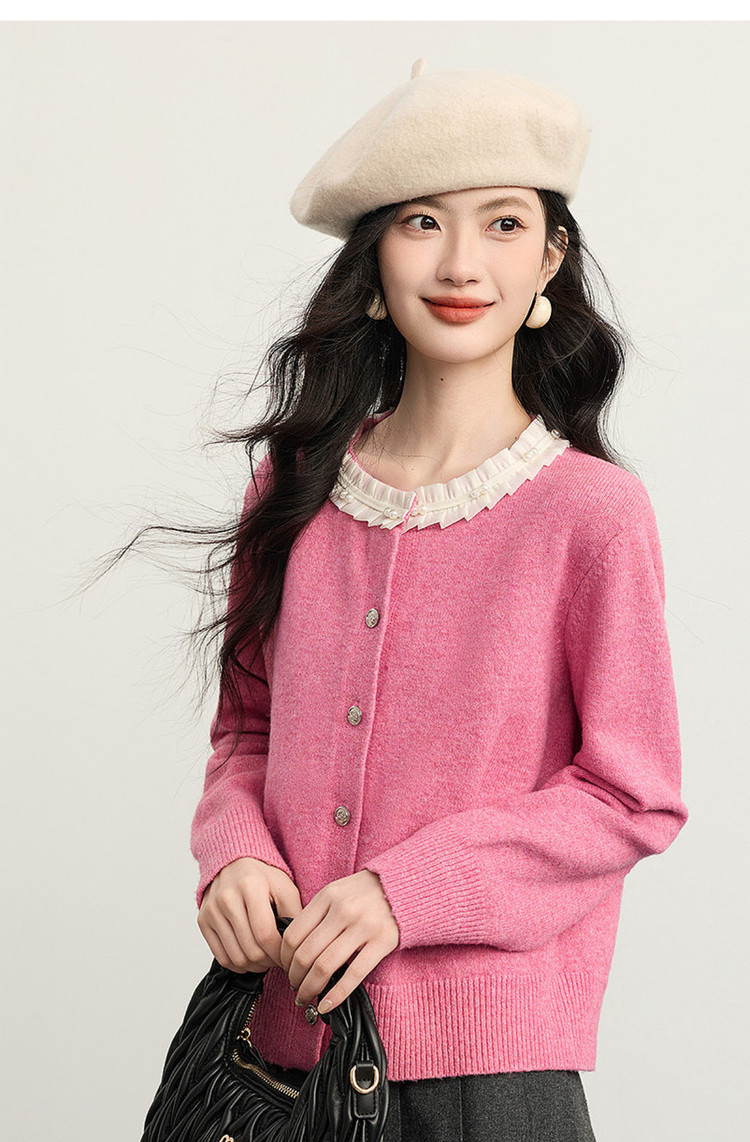 【年货节】熙世界小香风气质钉珠蕾丝花边圆领针织毛衣开衫女2025年秋冬新款