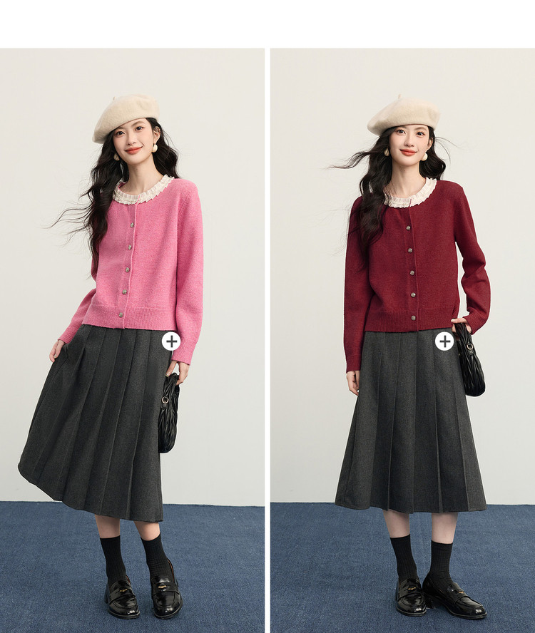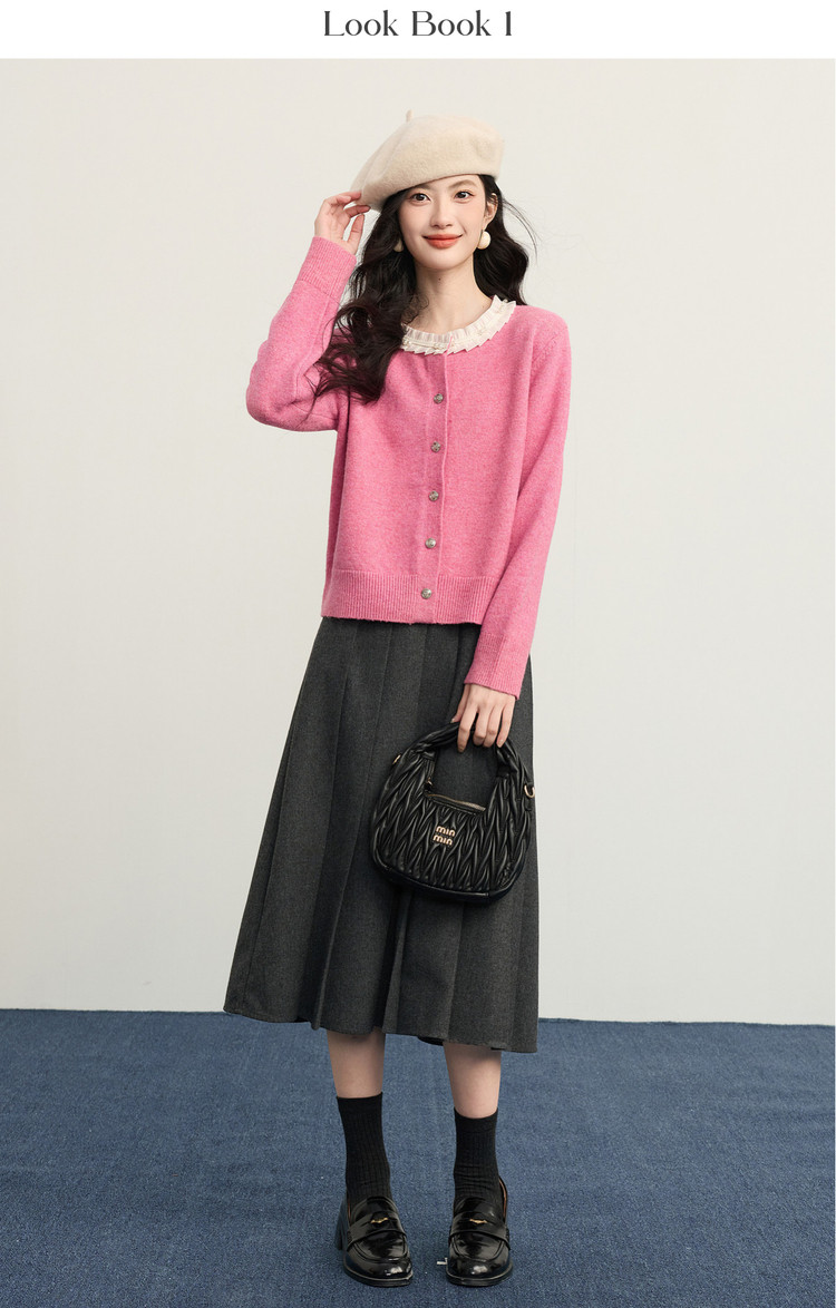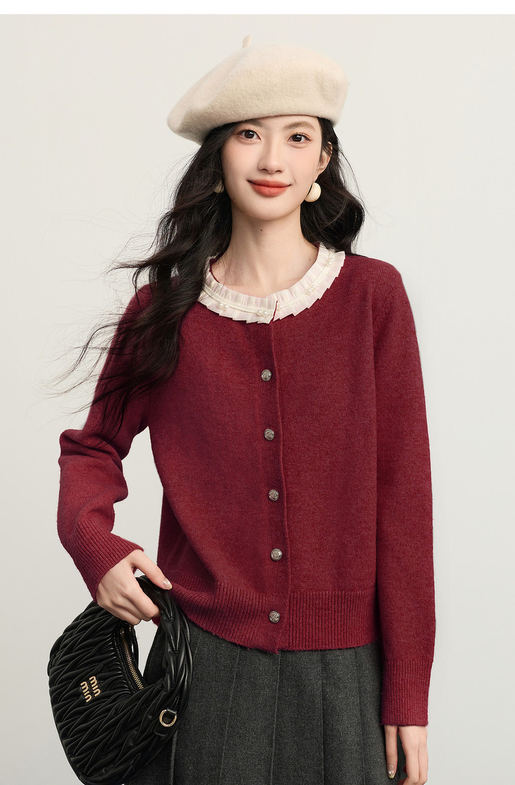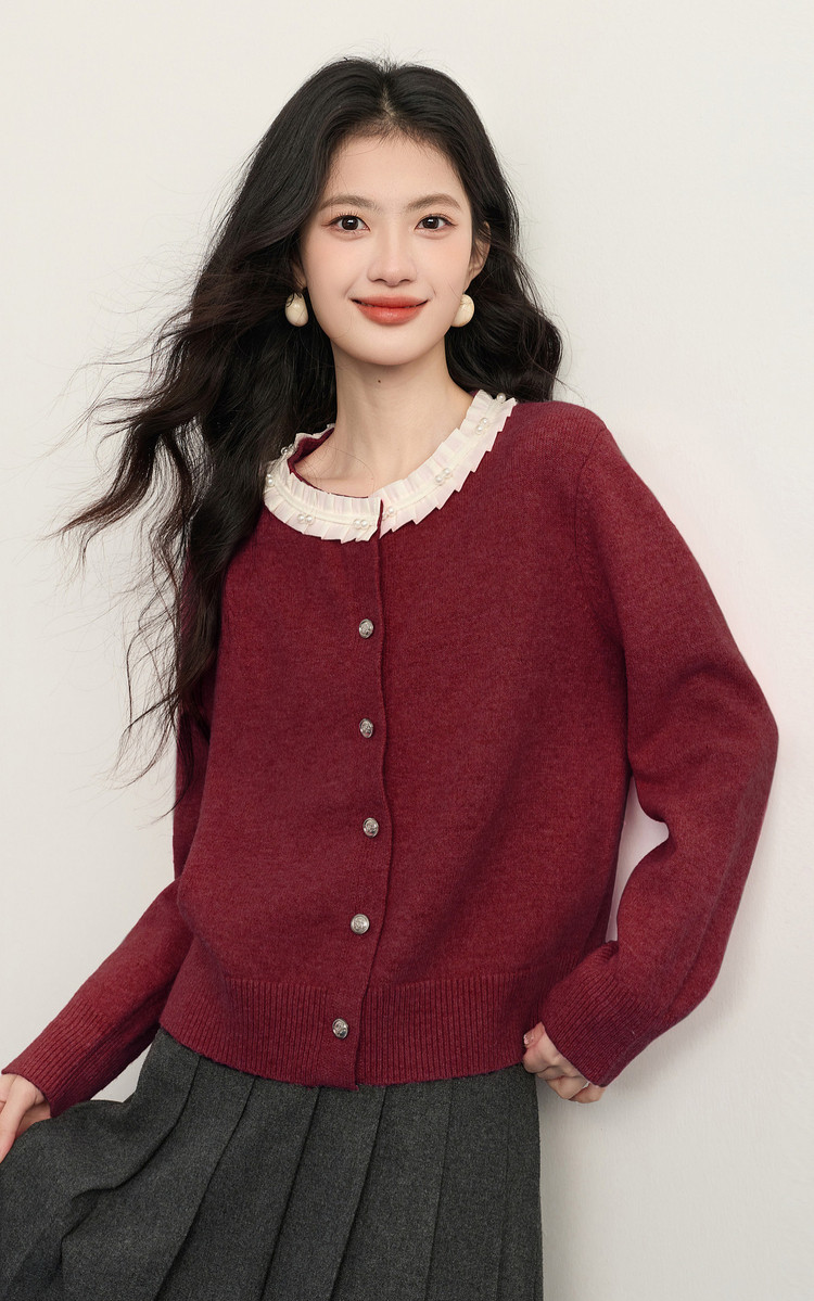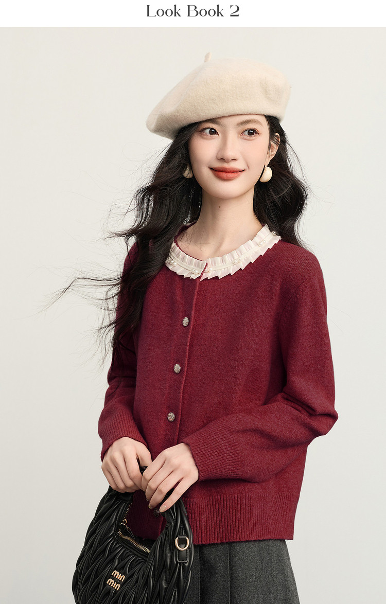 【年货节】熙世界小香风气质钉珠蕾丝花边圆领针织毛衣开衫女2025年秋冬新款