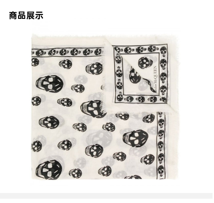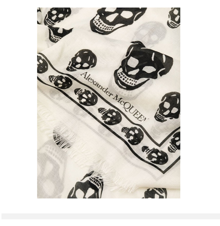 ALEXANDER MCQUEEN 亚历山大·麦昆 男女同款骷髅印花围巾 白色 557717 4943Q 1960