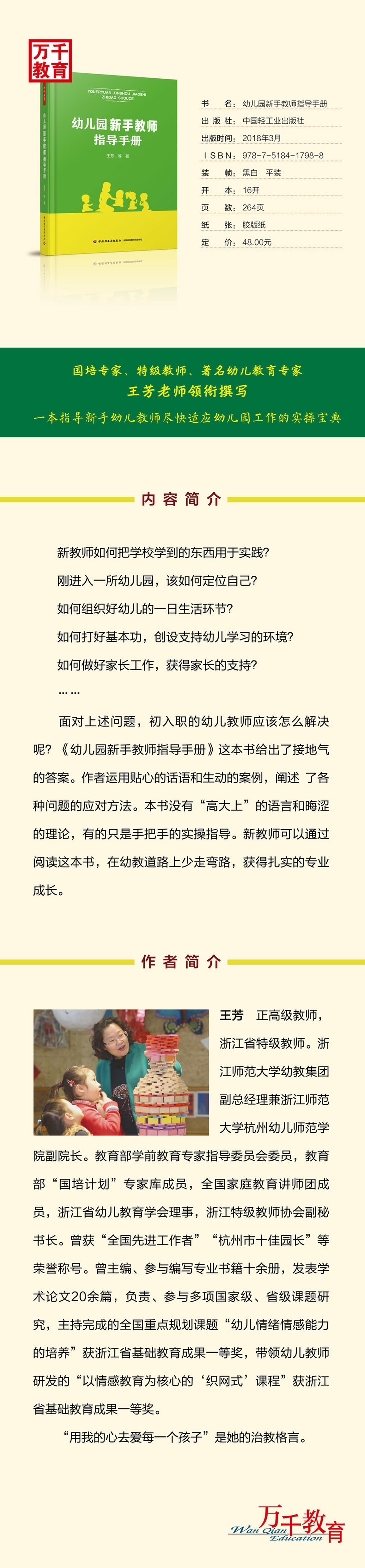 本书作者王芳老师深耕幼教一线30多年,接触与指导过无数名新手幼儿教师,最为了解她们的处境。