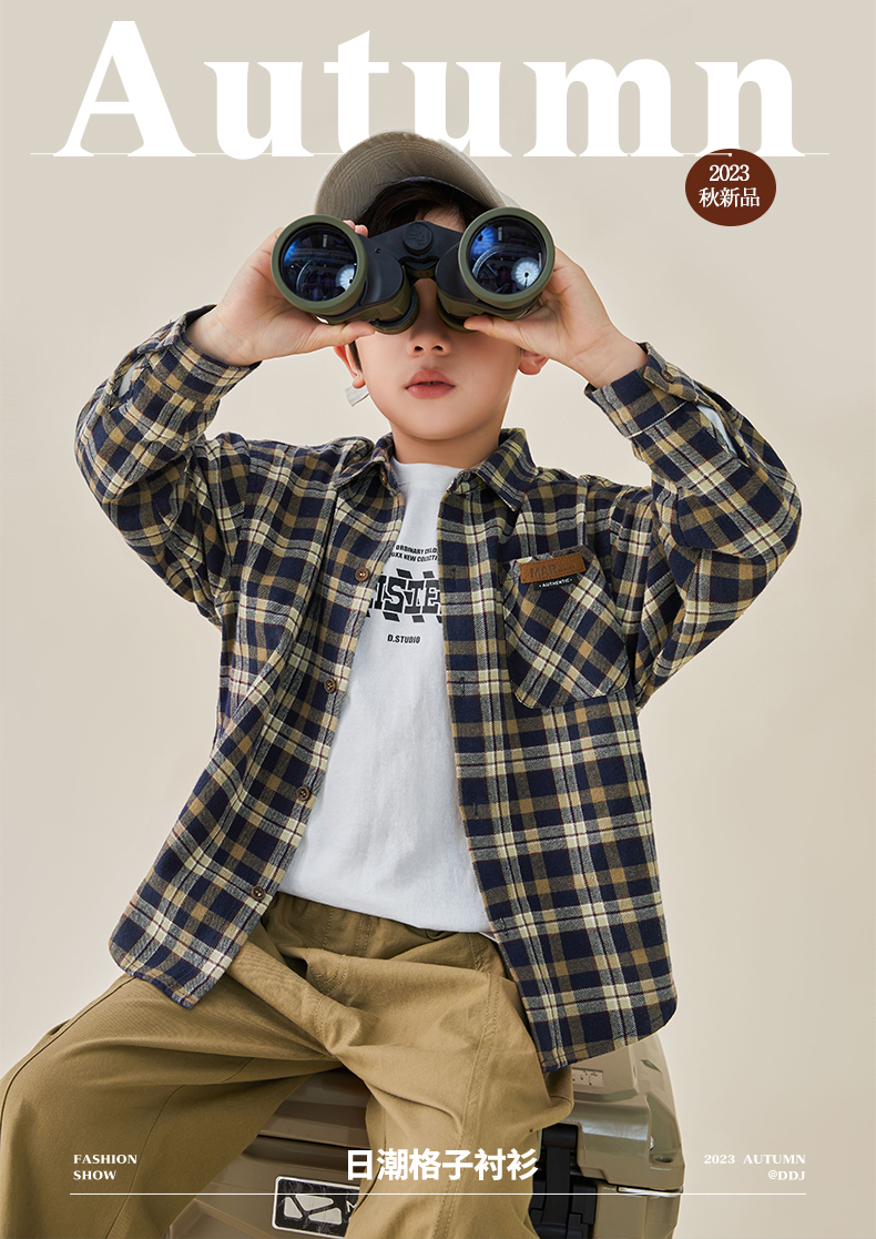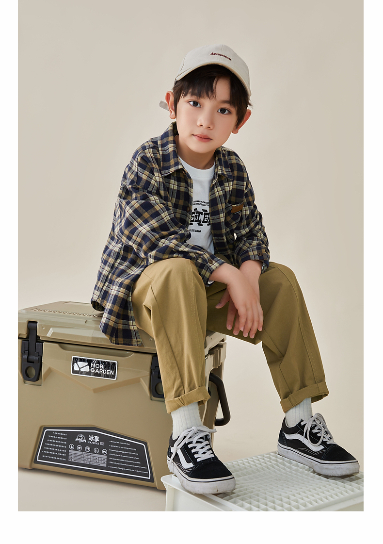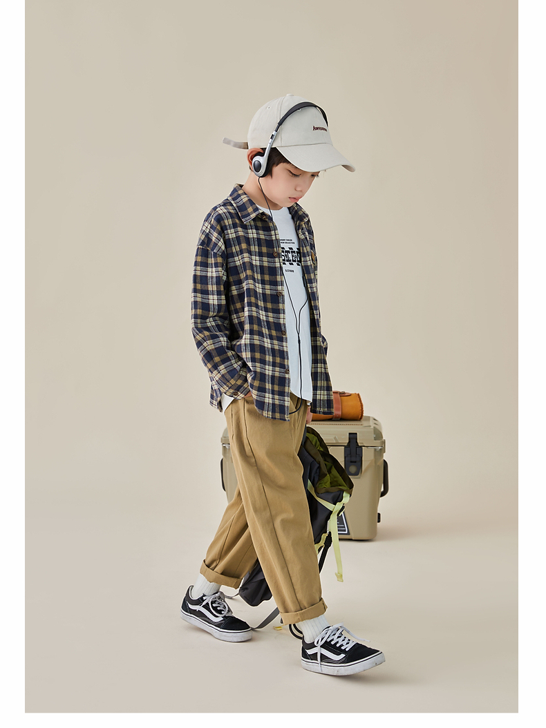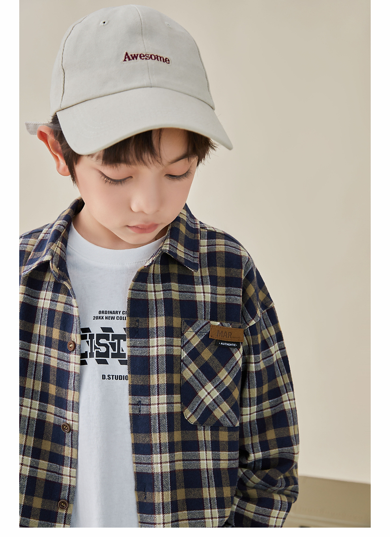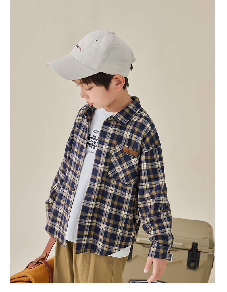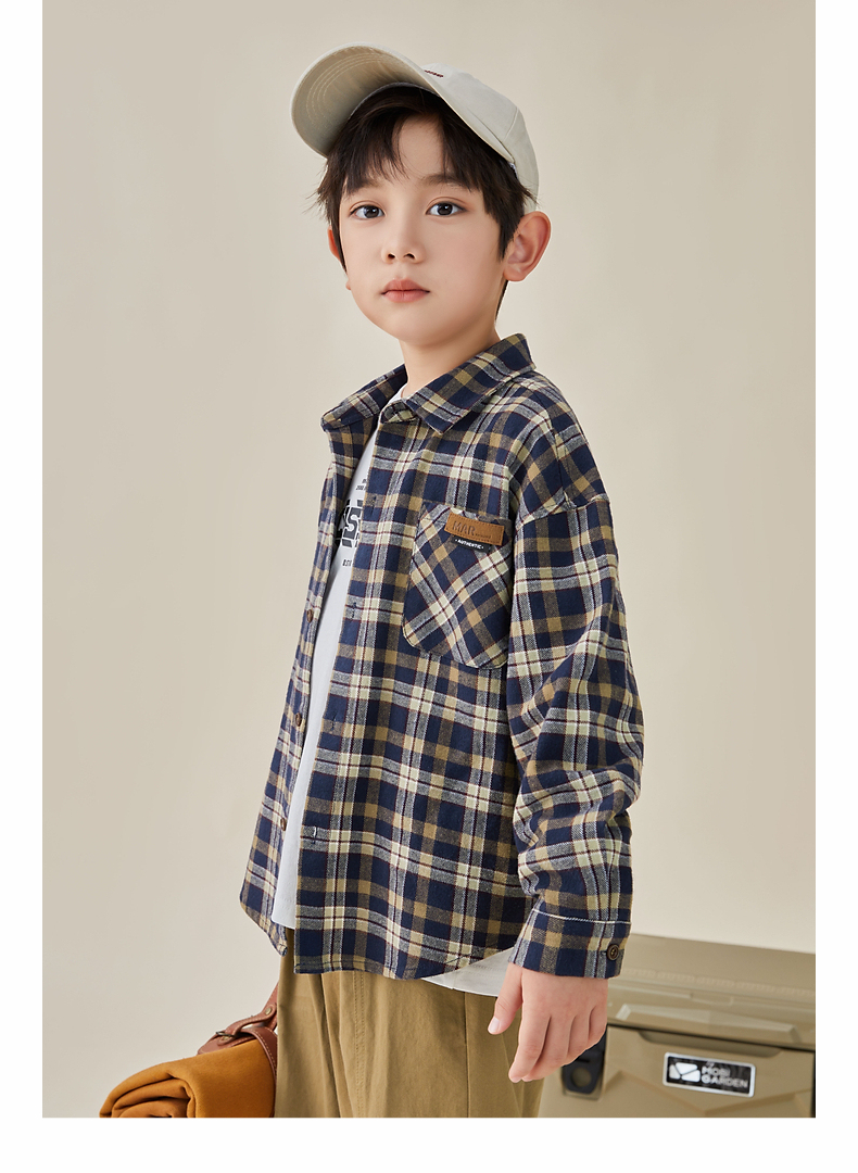 【件件底价,童装双倍积分】多多家男童格子长袖衬衫春秋款秋装新款儿童中大童纯棉衬衣8024