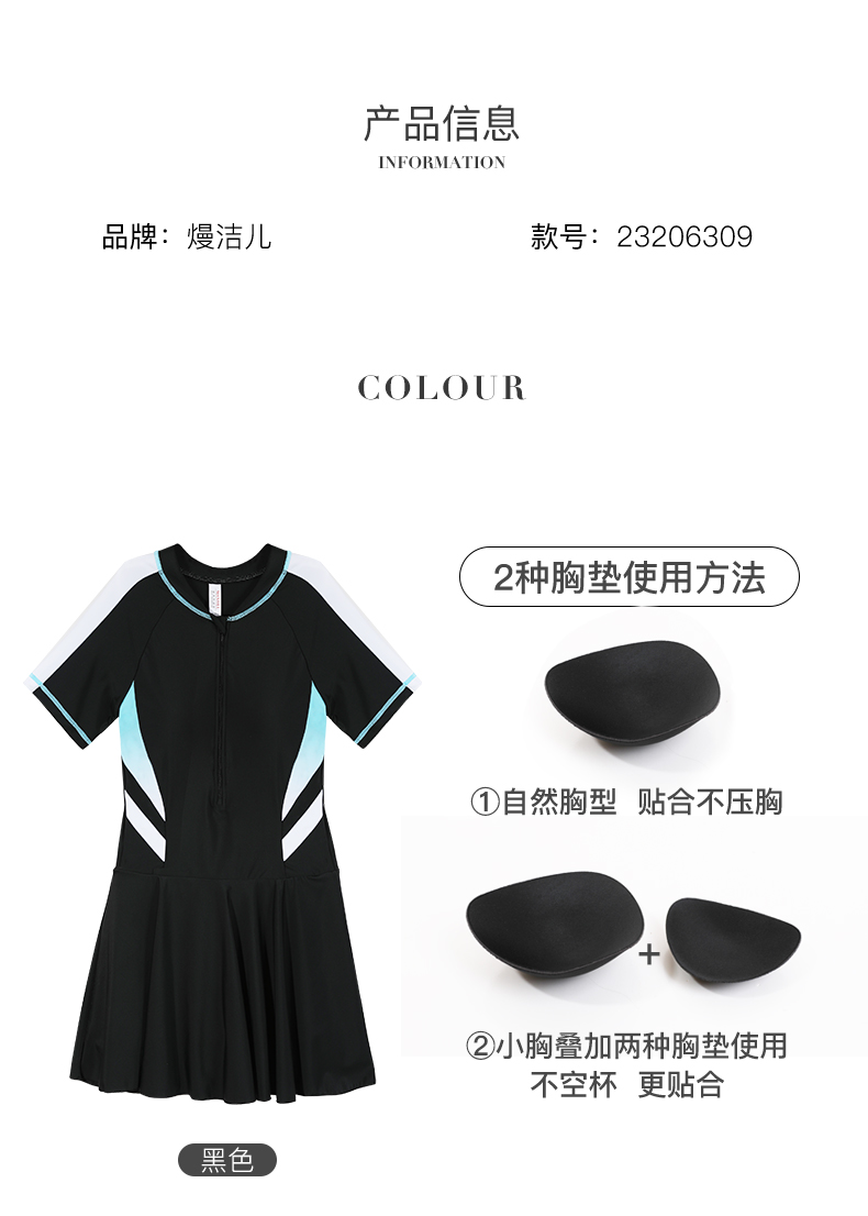 【M码】熳洁儿 夏季女士泳装遮肉显瘦运动风连体裙式23206309