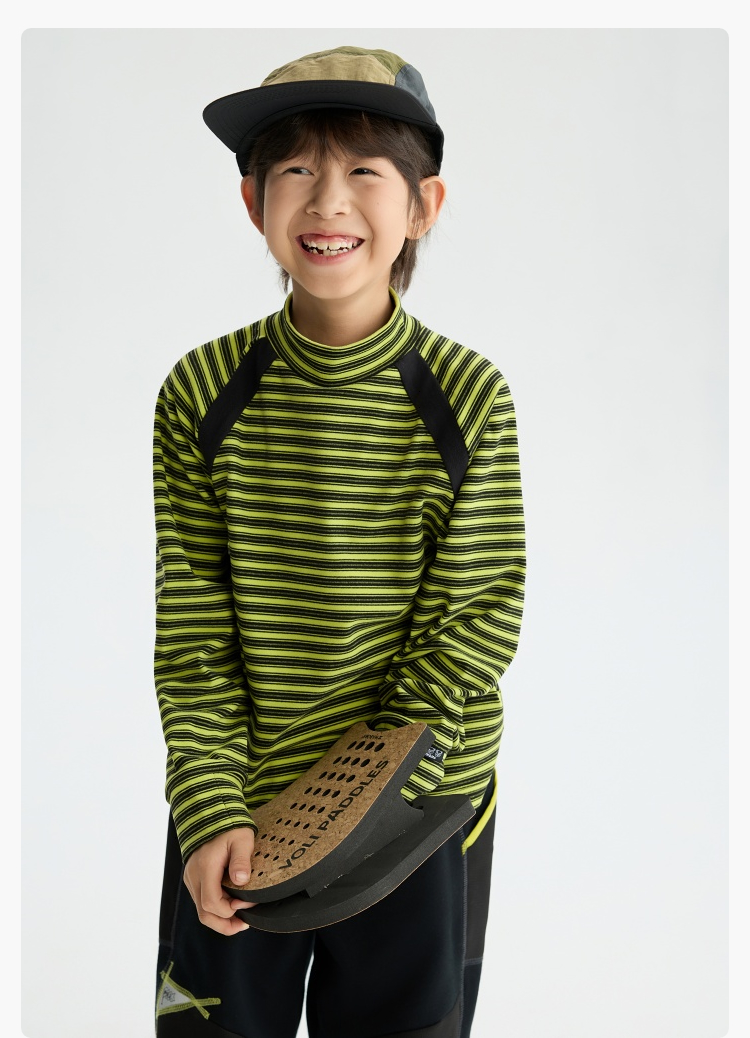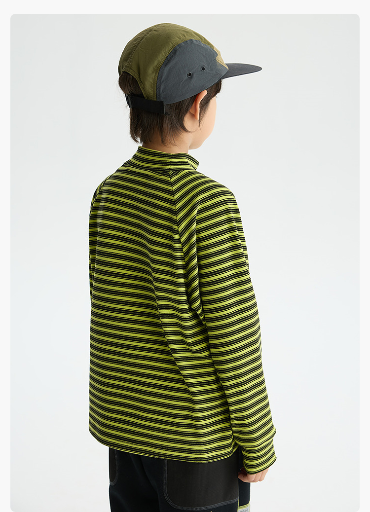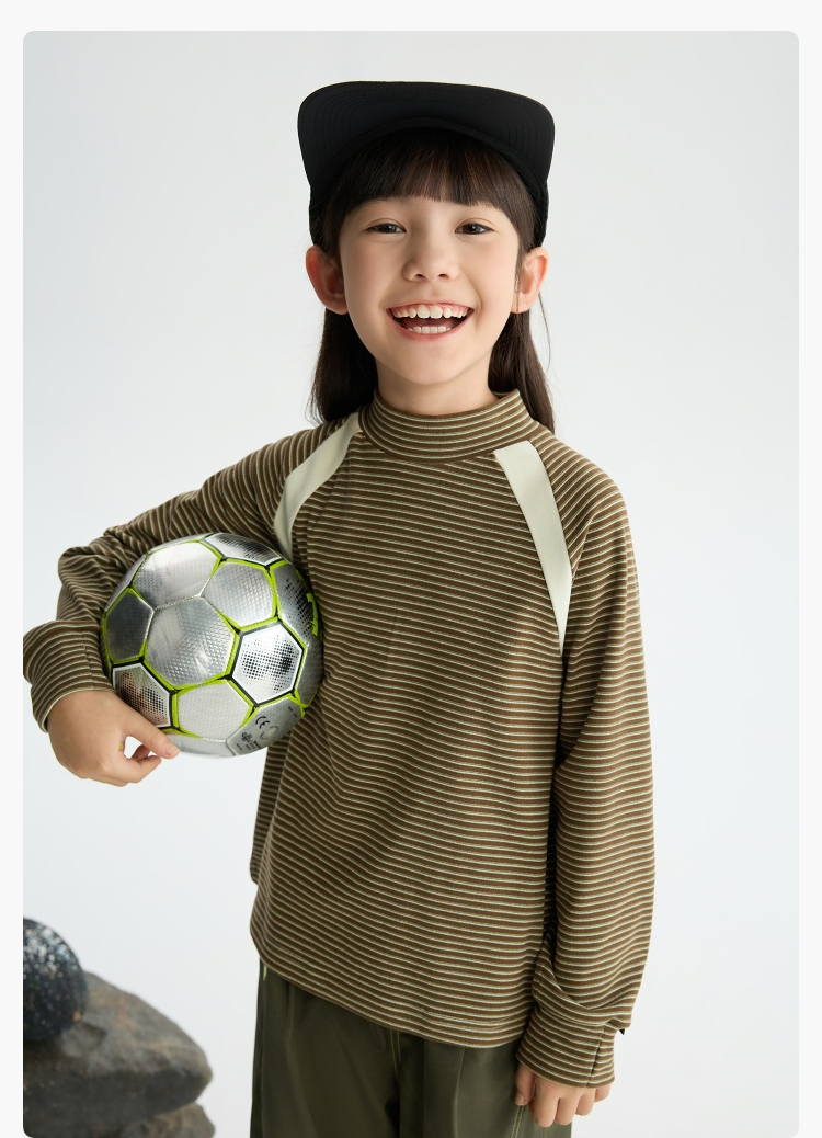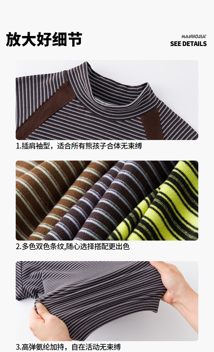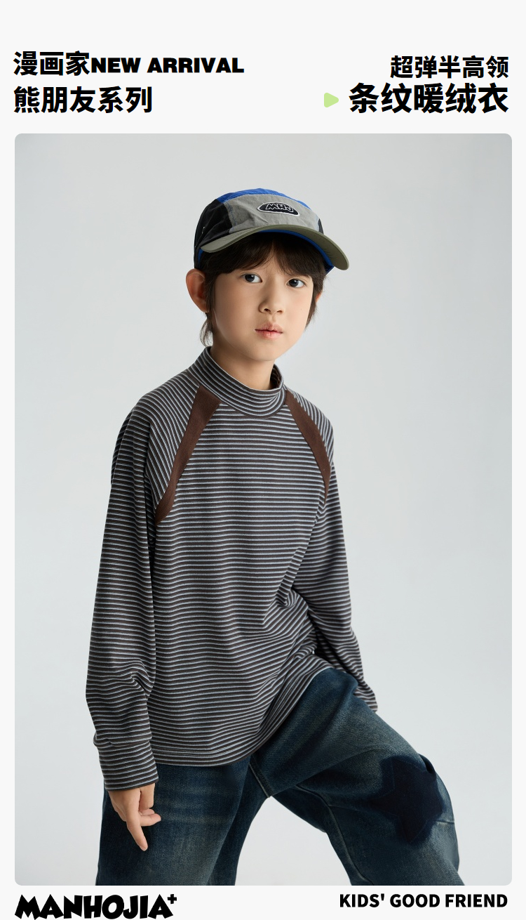 漫画家【条纹暖绒衣】儿童T恤25秋冬男女柔软保暖弹力条纹打底衣