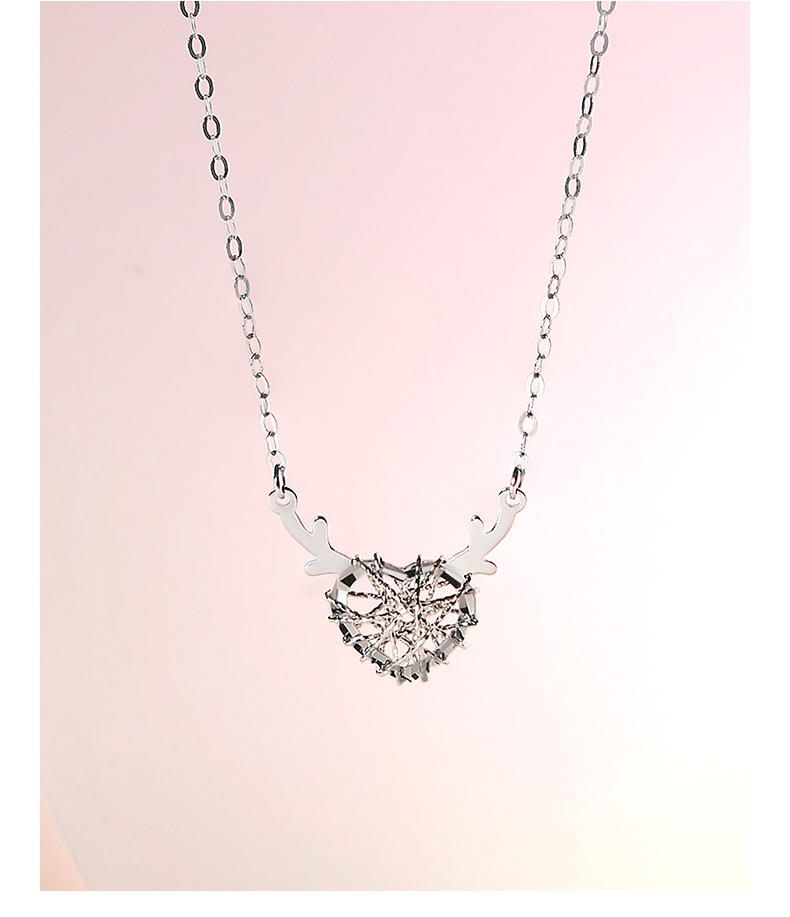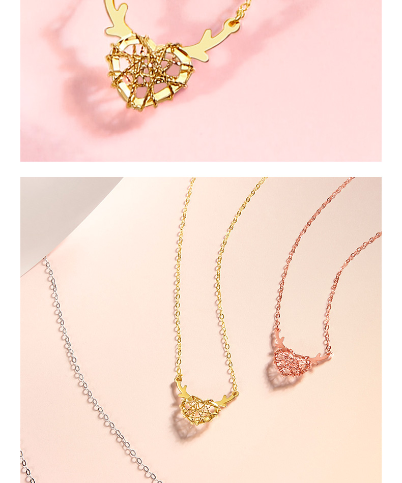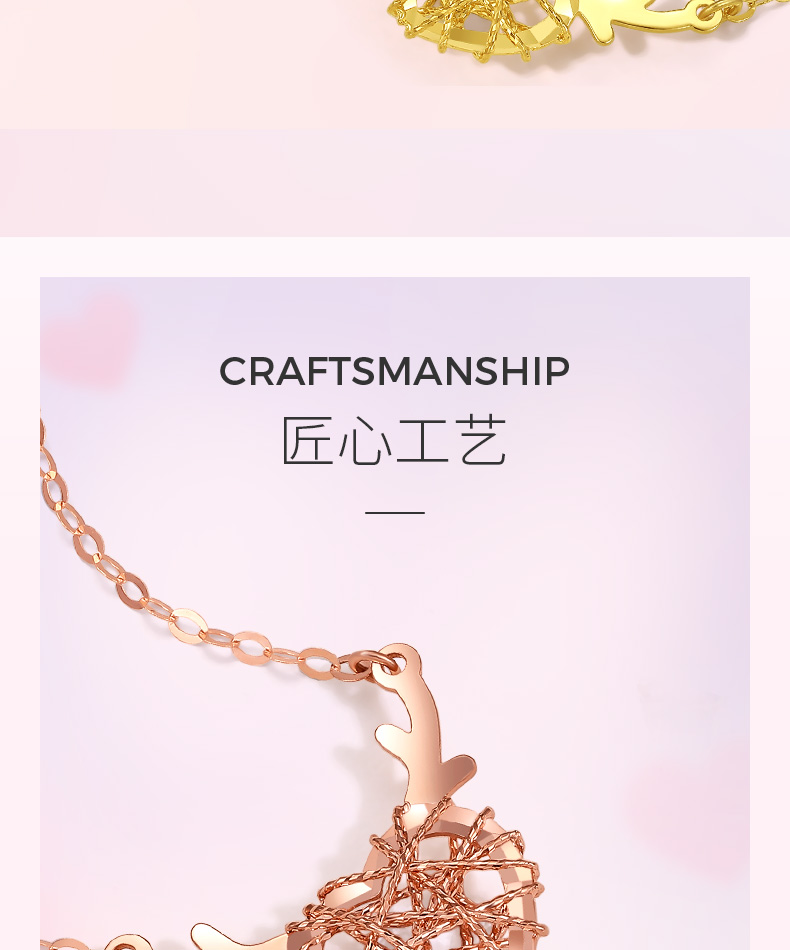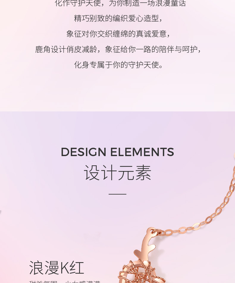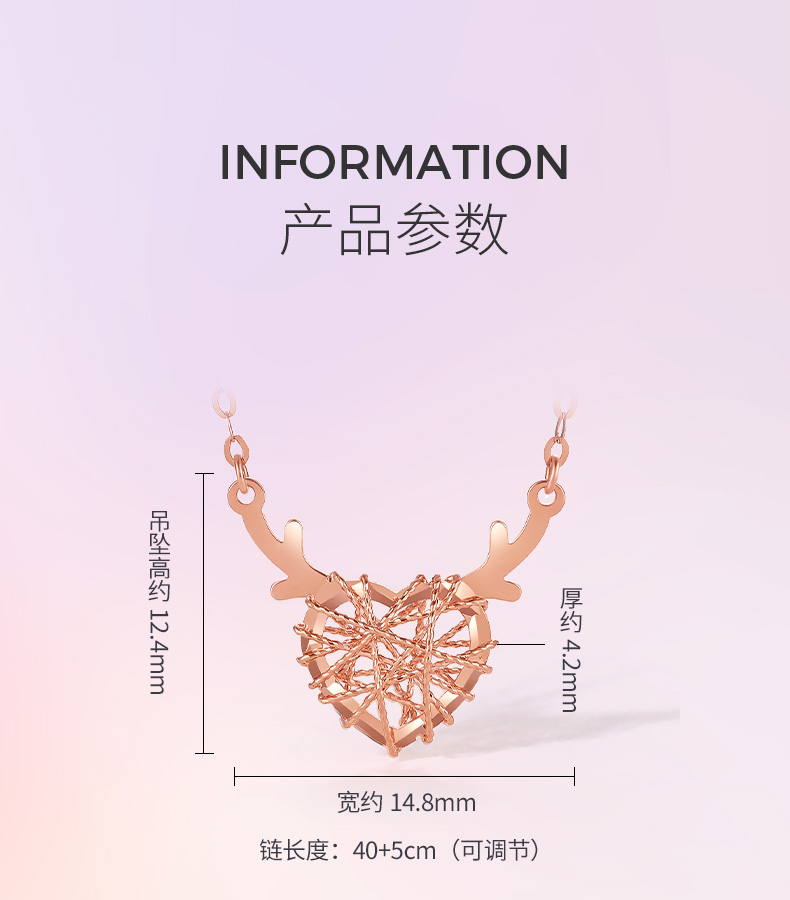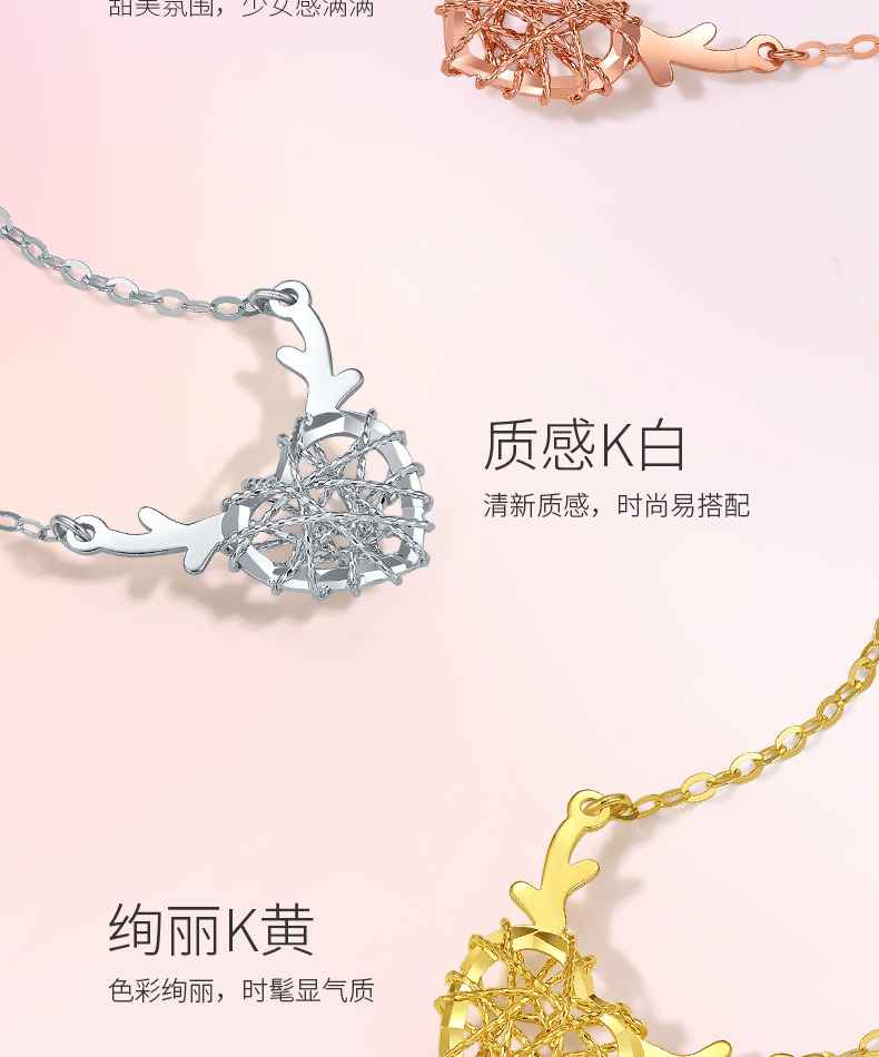 周六福18K金项链女一鹿有你守护天使鹿角爱心吊坠多彩金女友颈饰