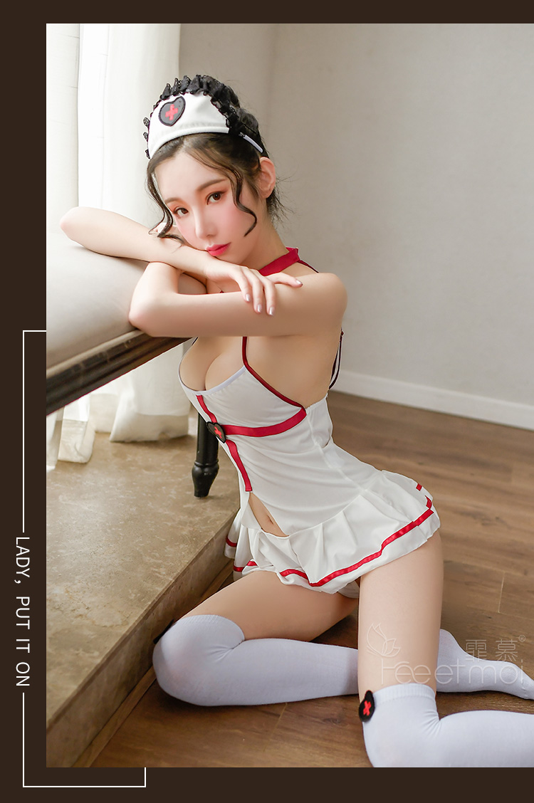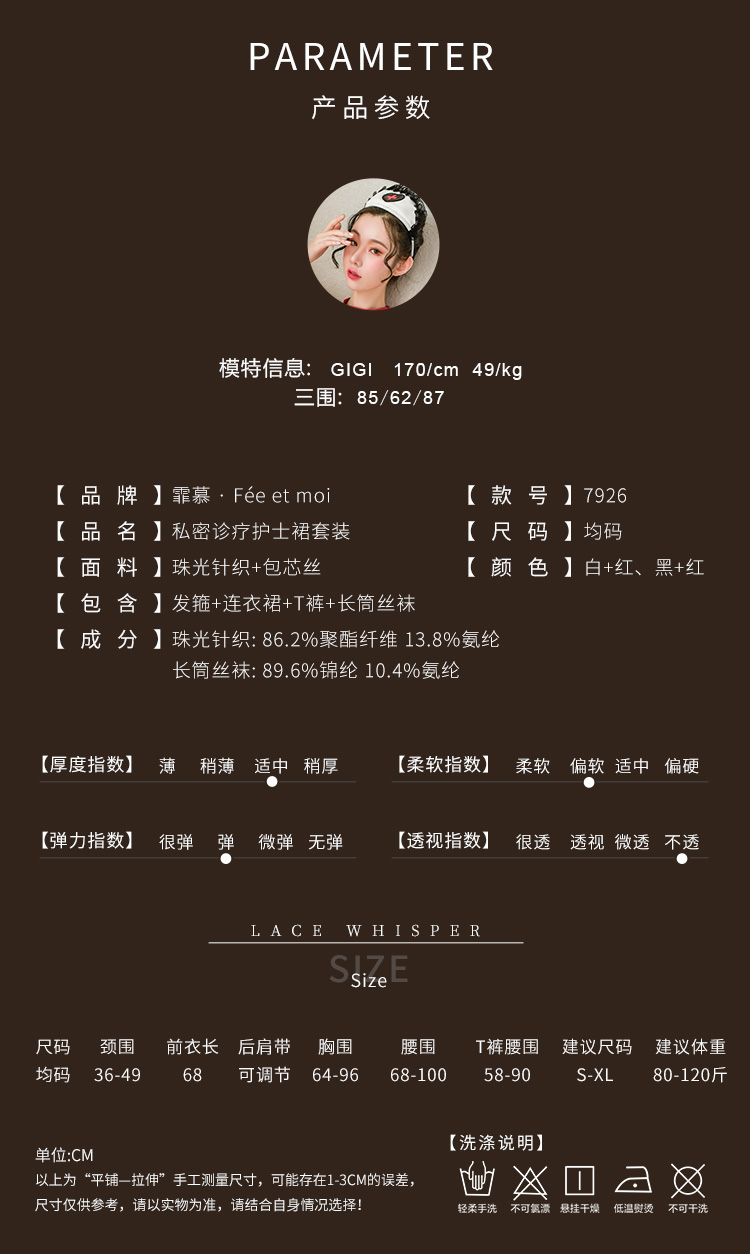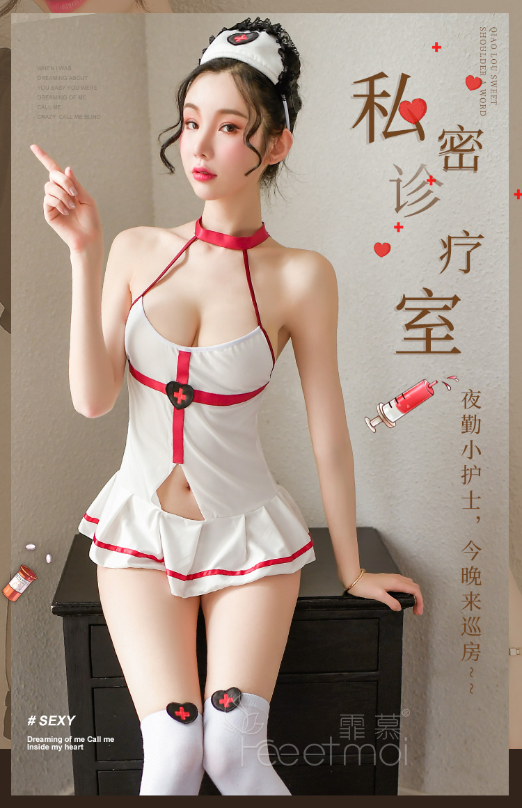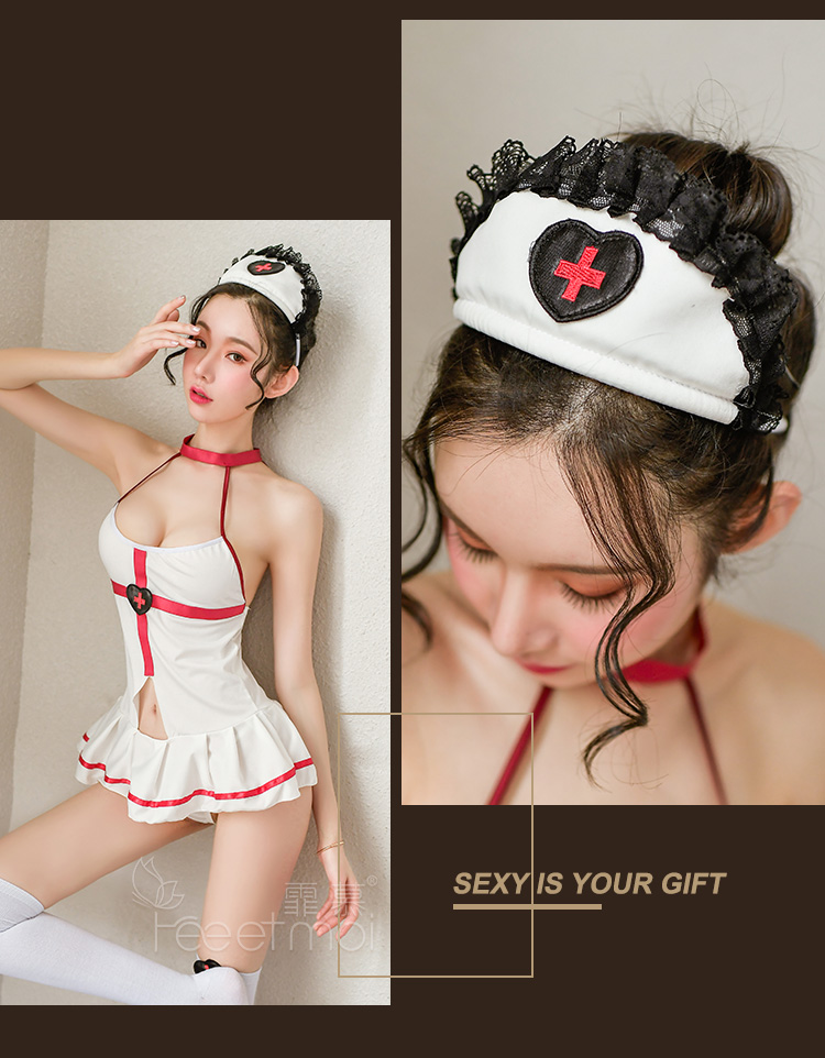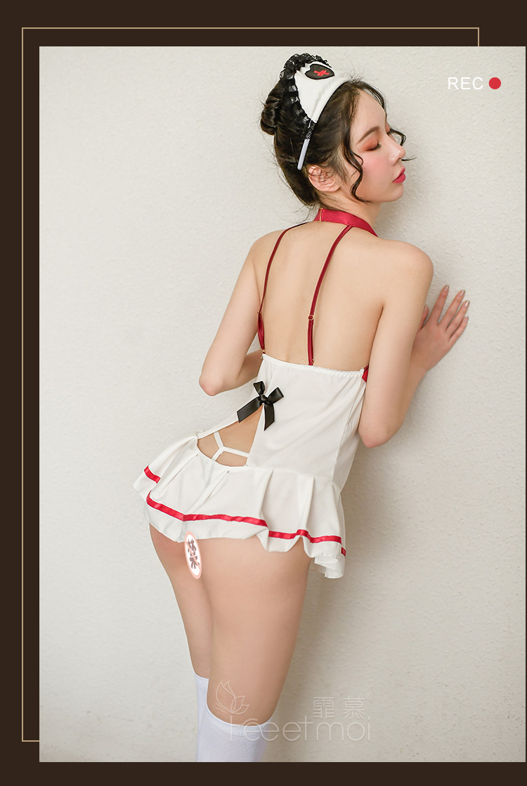 【红与白】情趣内衣 制服 后背 镂空 低胸 挂脖 性感 角色 扮演 护士 型号;7926