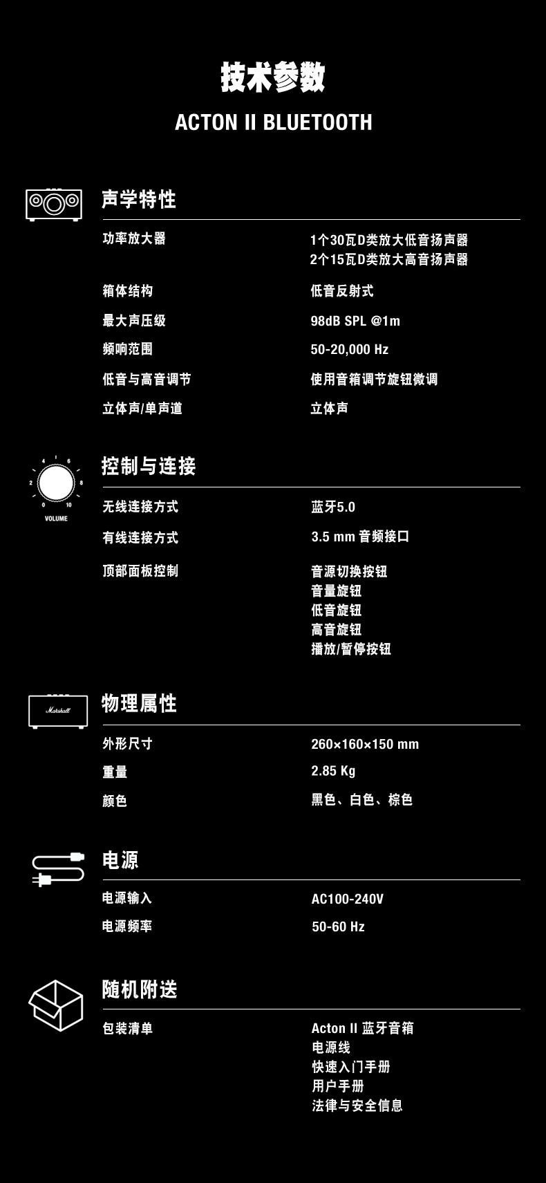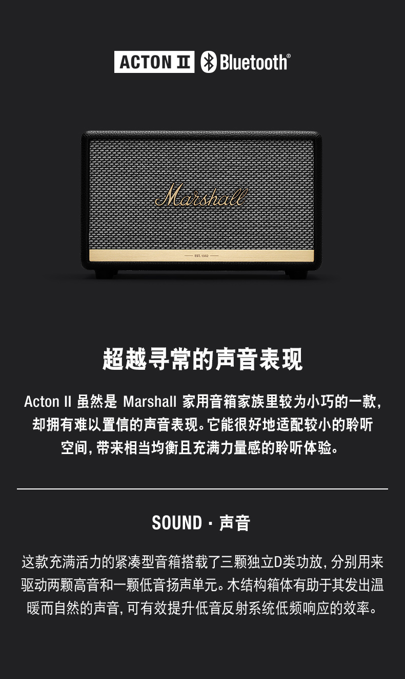马歇尔Marshall 音箱 Acton II 黑色( 3C 版 )