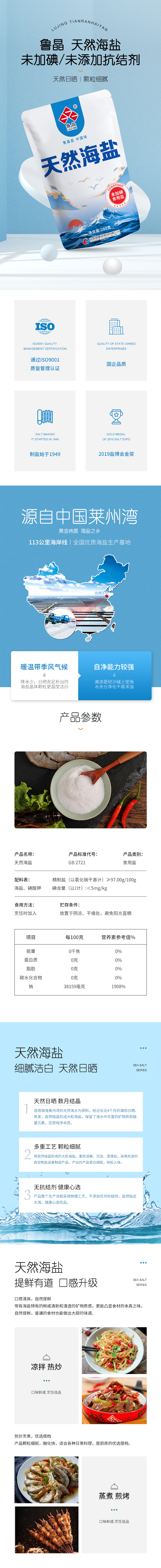 鲁晶未加碘天然海盐280g*5袋